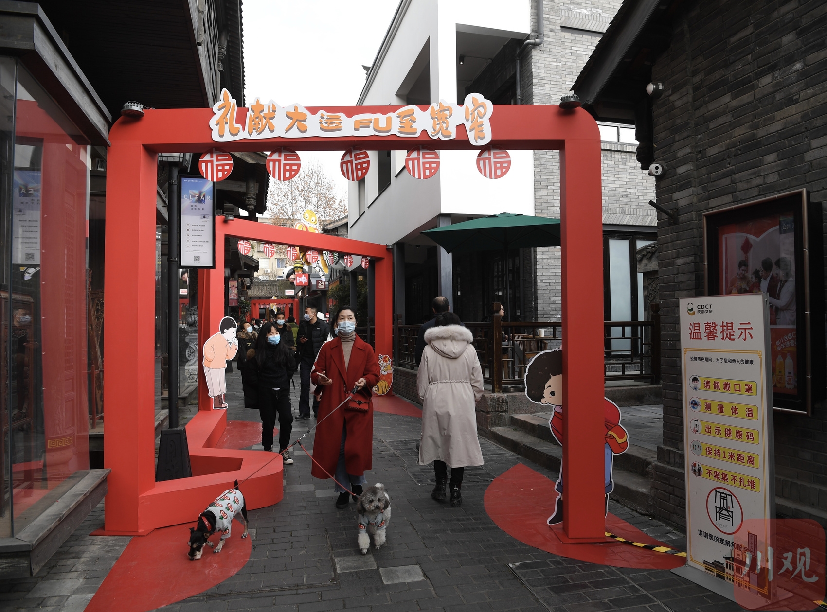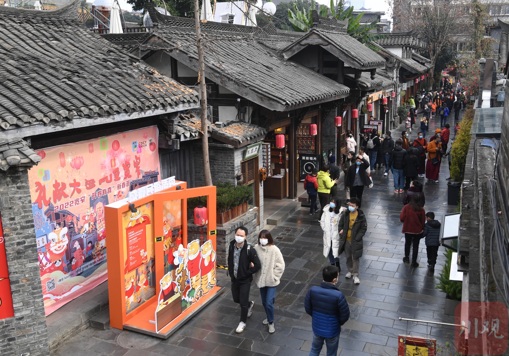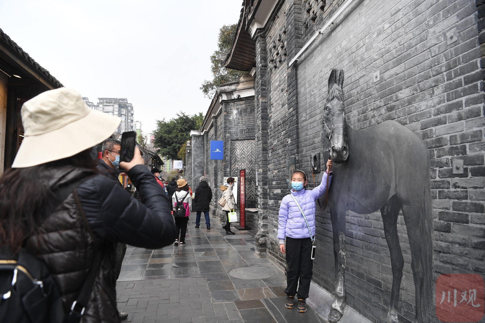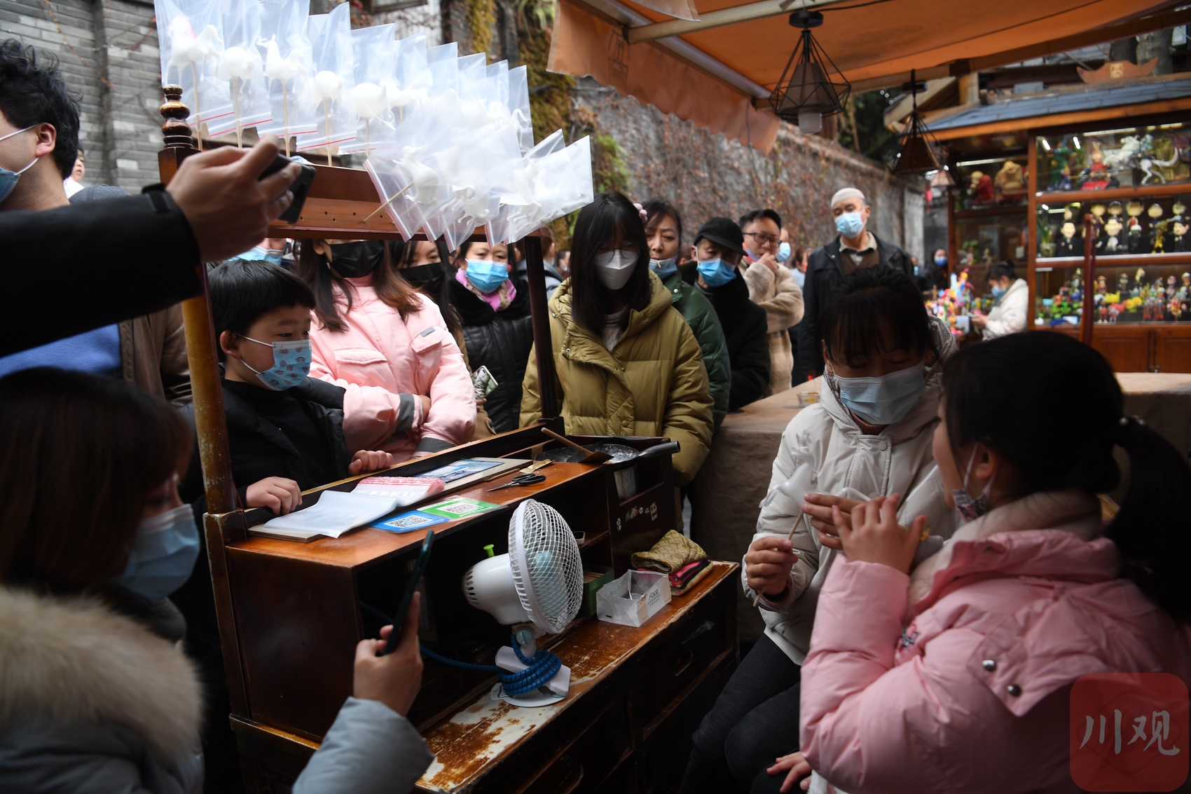 1月31日,成都宽窄巷子洋溢着浓浓的年味,不少游客和就地过年的人们来此游览休闲,观看川剧变脸,品地道盖碗茶,尝鲜各类小吃,体验“吹糖人”……乐滋滋地度过一个快乐假日。