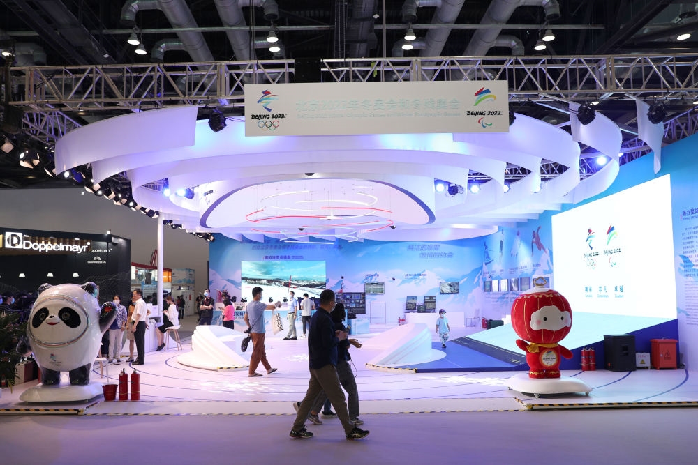2020年9月5日,国际冬季运动(北京)博览会综合展区冬季运动专区内北京2022年冬奥会和冬残奥会展台。新华社记者李明摄