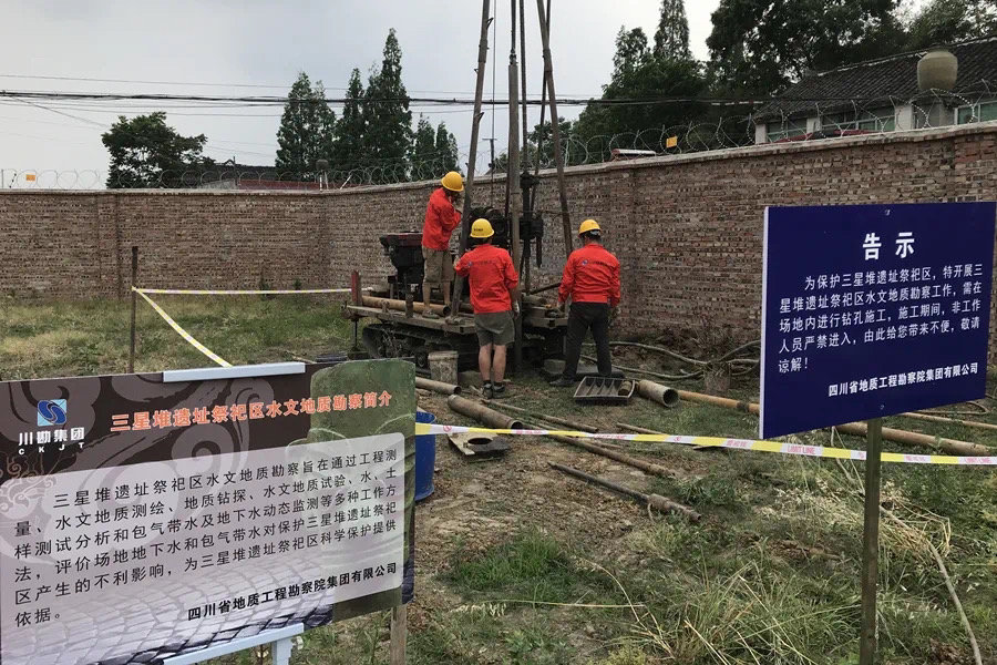 要唤醒三星堆文物,必须迈过这道坎。受四川省文物考古研究院委托,四川省地质矿产勘查开发局下属单位川勘集团公司通过测绘、钻探、现场试验、室内土工试验以及地下水长时序动态监测等多种手段对祭祀区进行水文地质勘察。