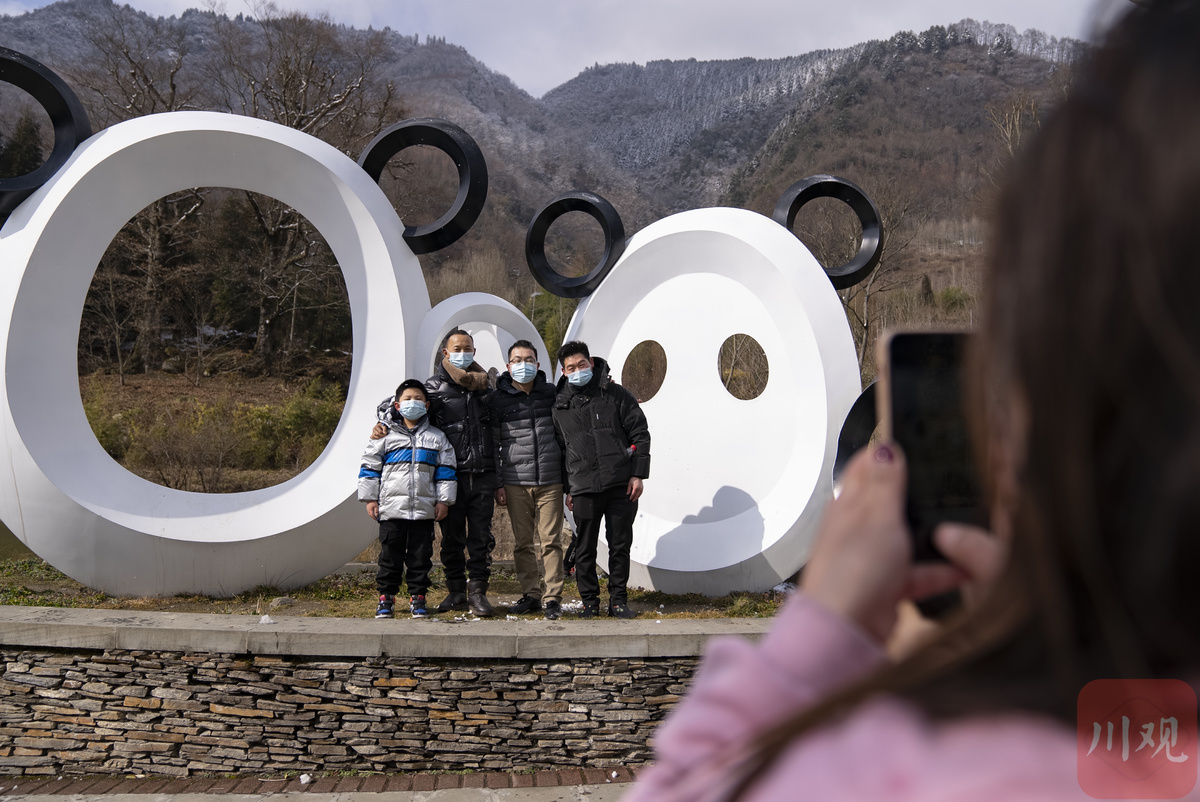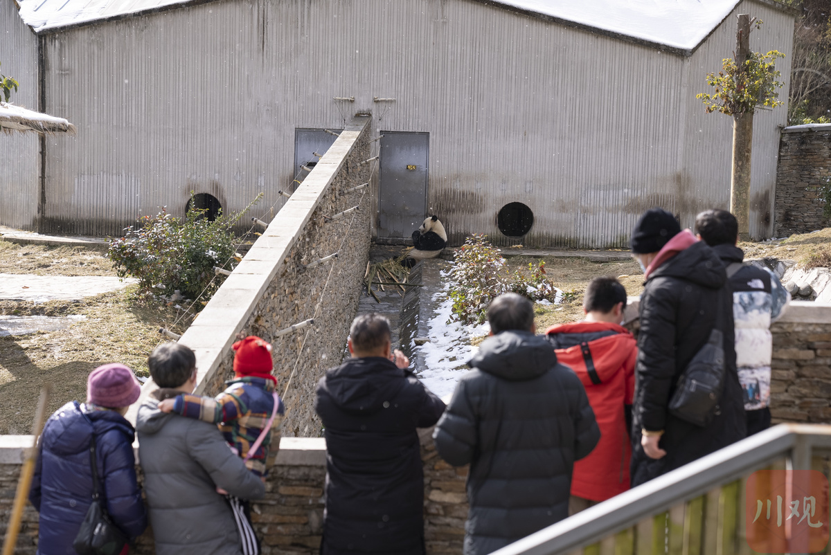 2月2日,卧龙中华大熊猫苑神树坪基地周围的山上银装素裹,宛如洁白的童话世界。四面八方的游客纷至沓来,在雪中欣赏憨态可掬的大熊猫。