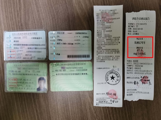 随后,现场执勤的民警将该车乘车人陈某带至警车旁用呼气式酒精检测仪对该车驾驶员进行酒精呼气式检测,测试的结果为67.9mg/100mL,该人员涉嫌饮酒后驾驶机动车的违法行为。经过现场执勤民警进一步询问后得知,该车二人属夫妻关系,同去亲戚家吃酒返回绵阳,在要出站时,其丈夫发现前方警灯闪烁,心慌之余与同车妻子迅速更换了座位,以为这样可以蒙混过关,结果还是被执勤民警查获。据陈某交代,中午在亲戚家吃酒喝了2瓶啤酒,想着晚上回家开车,酒应该已经消化了,便侥幸驾车,不想在收费站口被民警查获。
