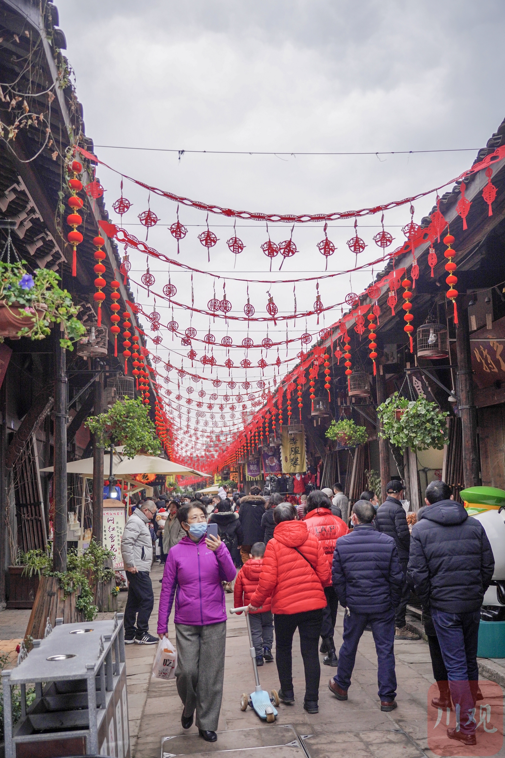 2月3日,大年初三,川观拍客来到成都市大邑县安仁古镇体验了一把非遗盛宴。新春佳节,安仁古镇大街上装扮着红红的灯笼、多彩的油纸伞等装饰品,格外喜人。川剧变脸、国潮巡游等形式多样、内容丰富的非遗节目表演,以及传统特色美食吸引了众多游客前来游玩、打卡。表演现场气氛喜庆热烈,充满浓浓的年味。精彩纷呈的演出,让游客近距离感受到非遗文化的魅力。