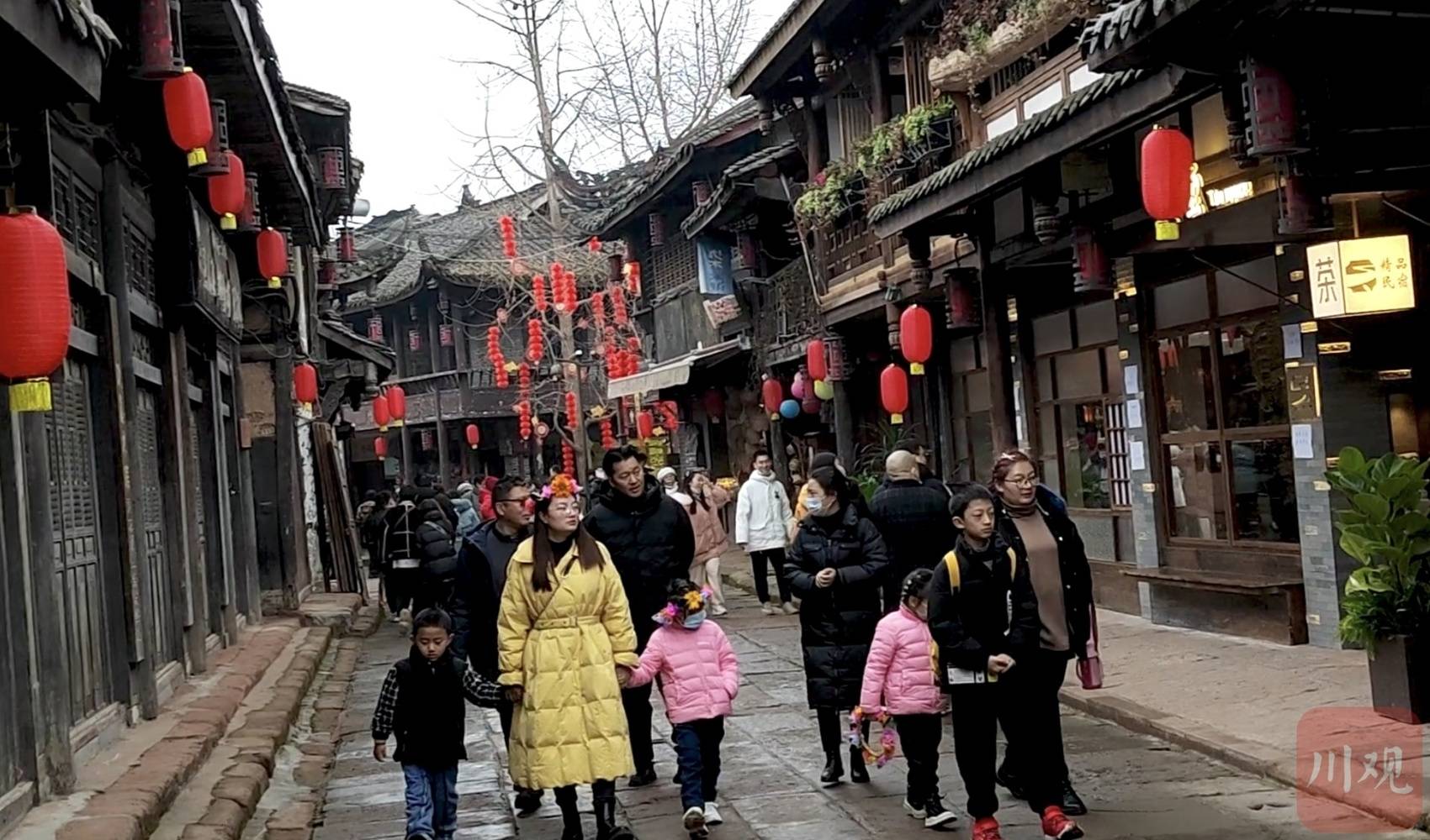 四川在线记者在成都市双流区黄龙溪古镇看到,古镇吸引了众多市民前来游玩。游客们在古镇上购物、品小吃、抓住假期的尾巴,欢欢喜喜过新年。