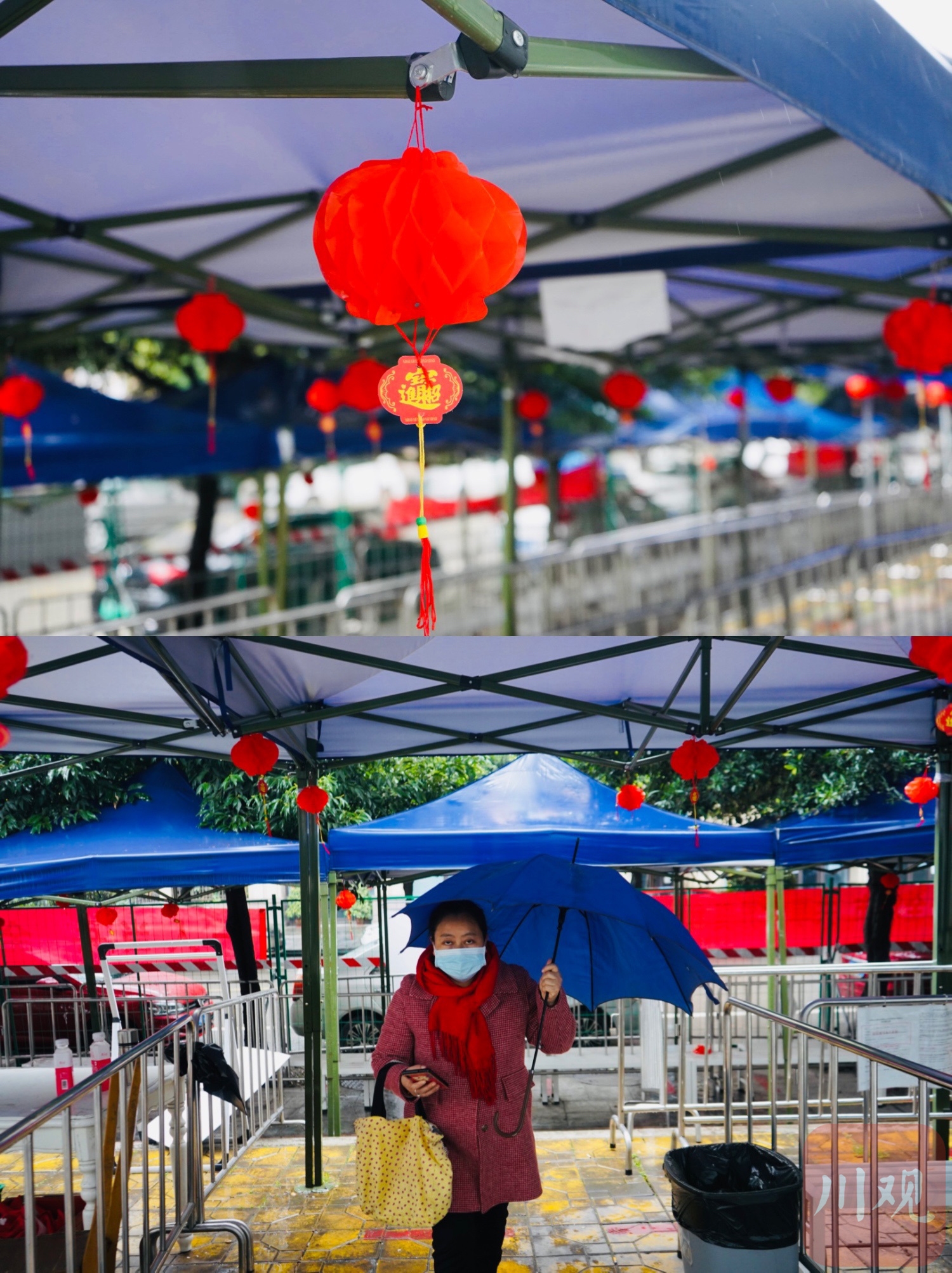 “新年好! ”2月6日上午,成都市武侯区红牌楼街道新冠疫苗临时接种点内,不少工作人员对来接种新冠疫苗的居民问好。在排队区,近百个迷你红灯笼挂在帐篷下随风摇曳,接种点内的登记台也挂上了几个可爱的小灯笼,整个接种点内都被年味笼罩。