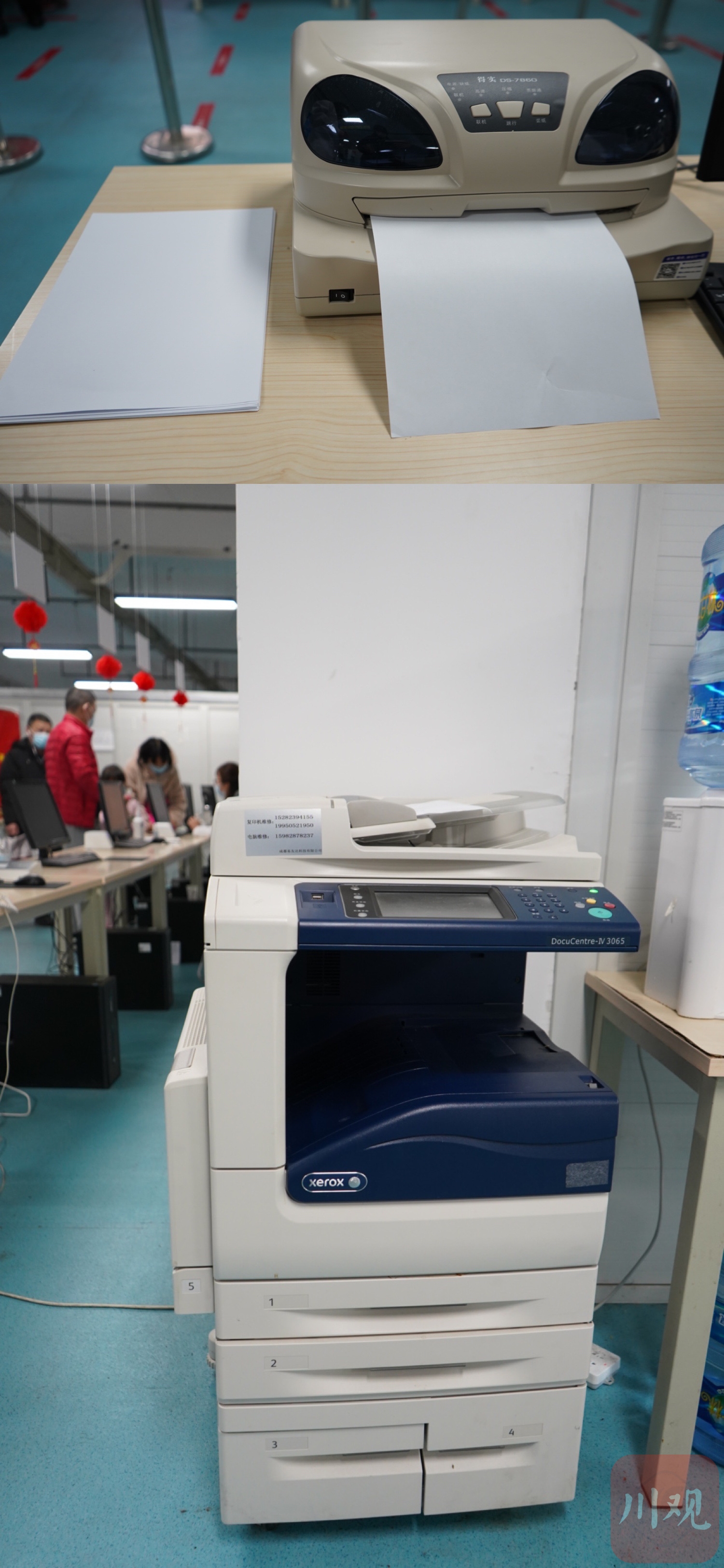 在登记区,一大一小两台打印机专门为居民提供免费打印服务。魏冯摄。