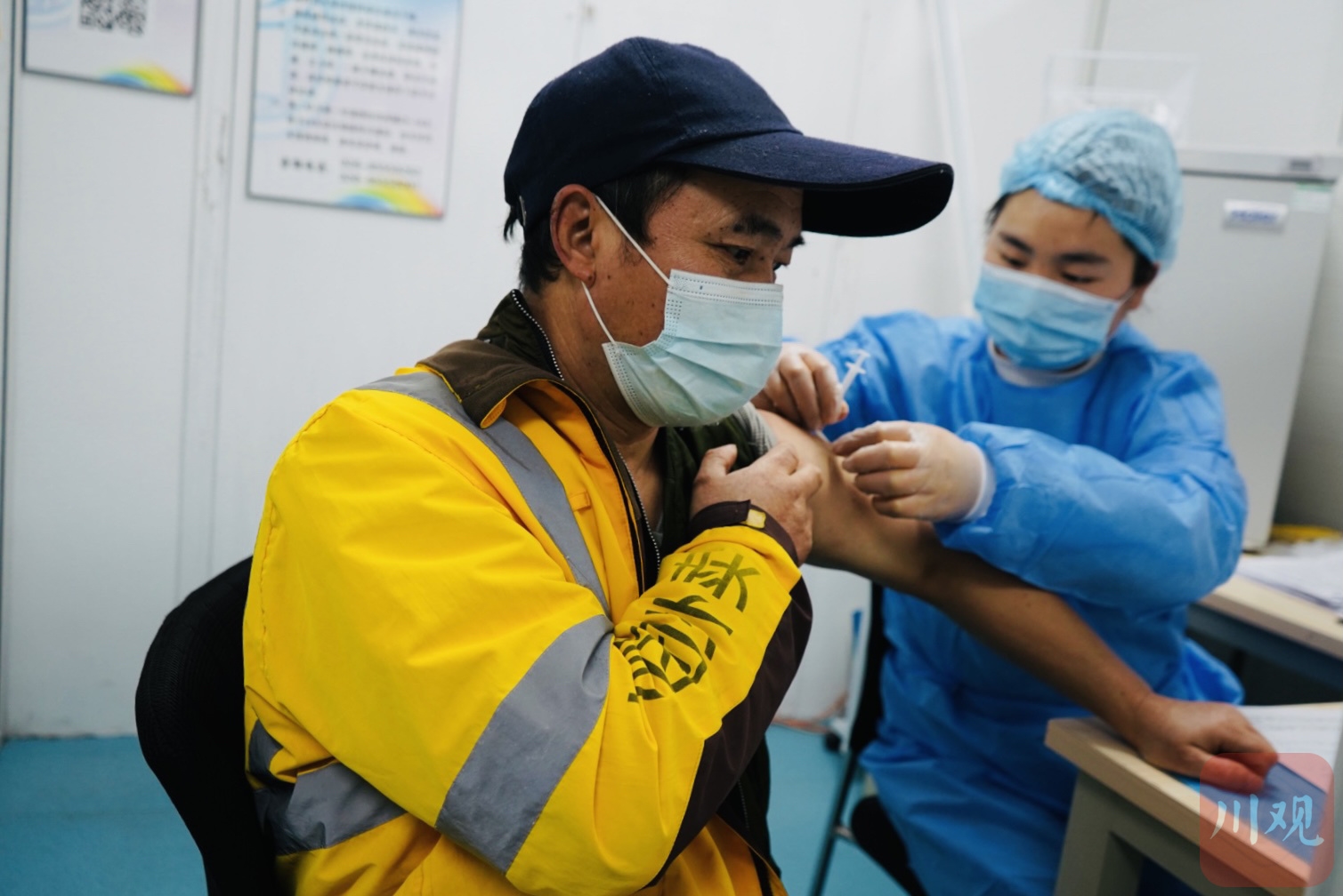 医护人员正在为外卖小哥打加强针。魏冯摄。