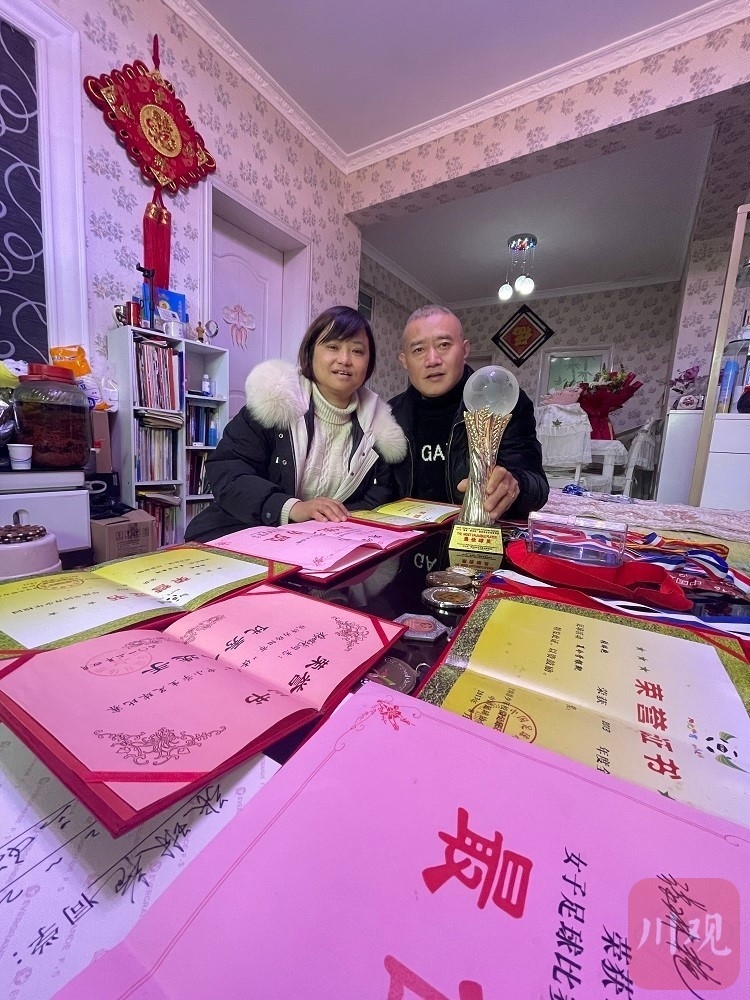 走进张琳艳家,能感受到比较浓厚的足球氛围,客厅的一个大柜子里装着一堆奖牌和证书——最佳运动员、最佳射手……全是张妈妈收藏的女儿获得的荣耀。