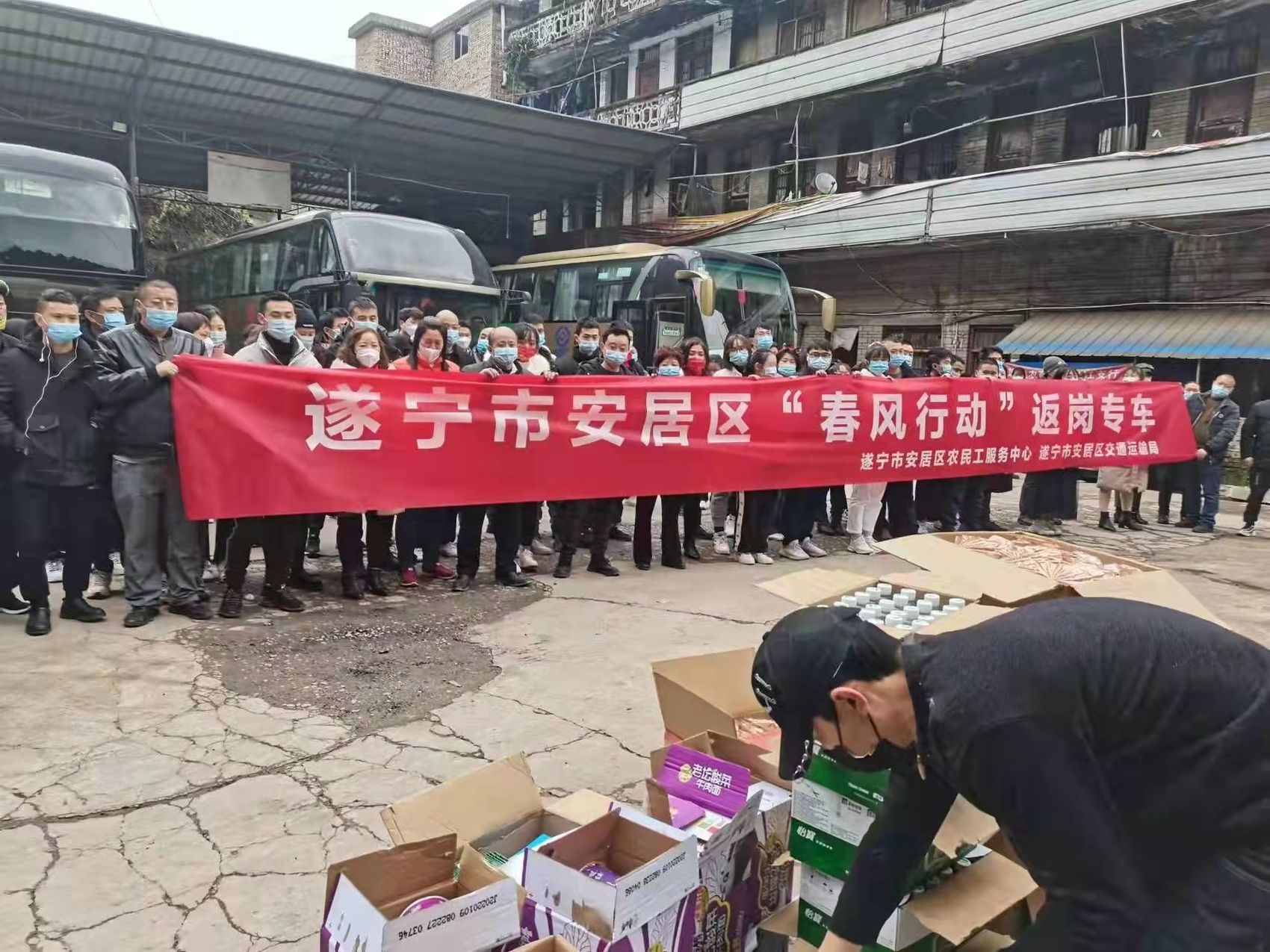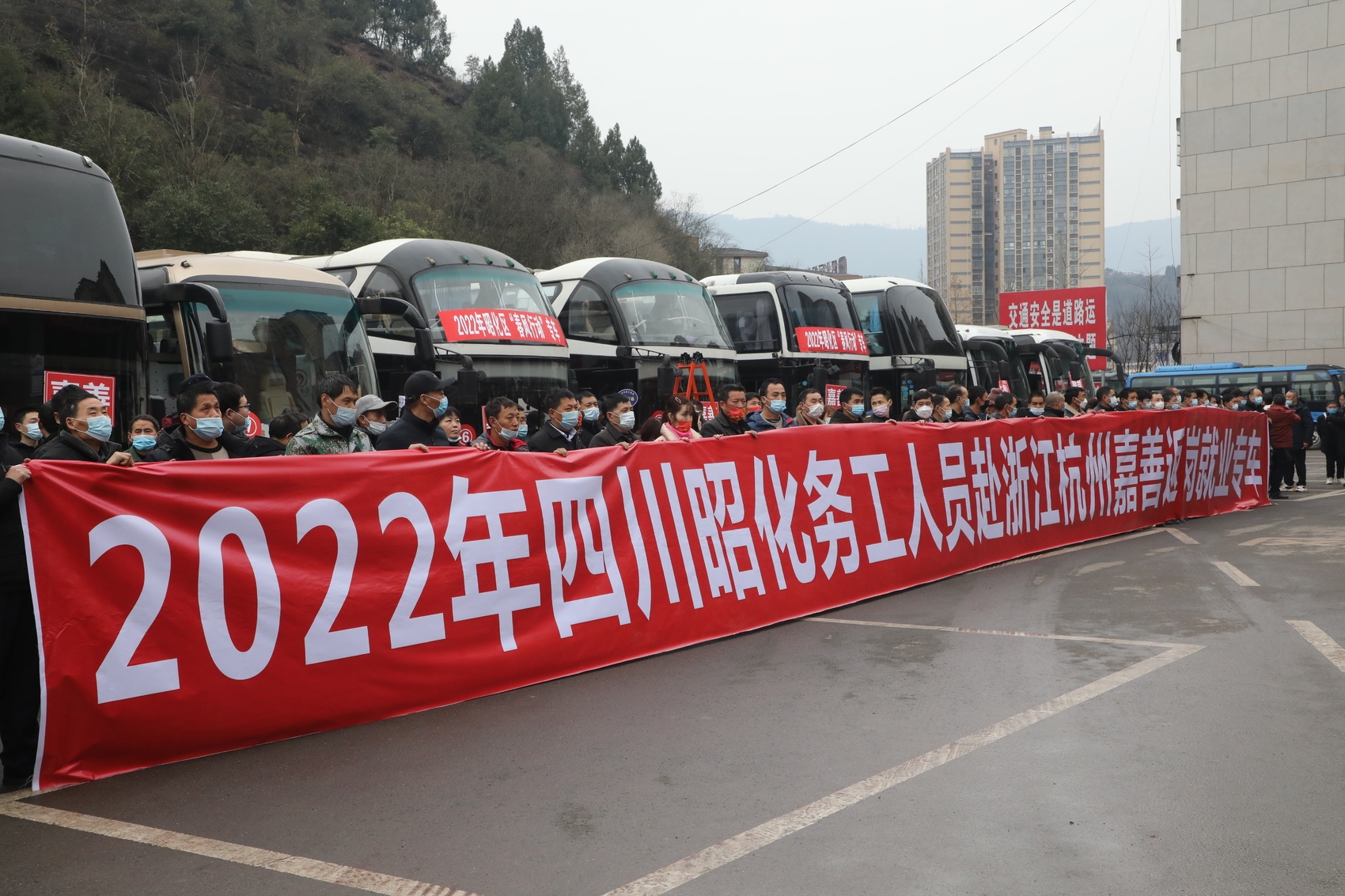 同一天中午12时,10辆“春风行动”专车从广元市昭化区汽车站驶出。503名昭化籍农民工在家乡党委政府的欢送下,坐专车奔赴浙江、上海等地,开启新一年的返岗就业之路。