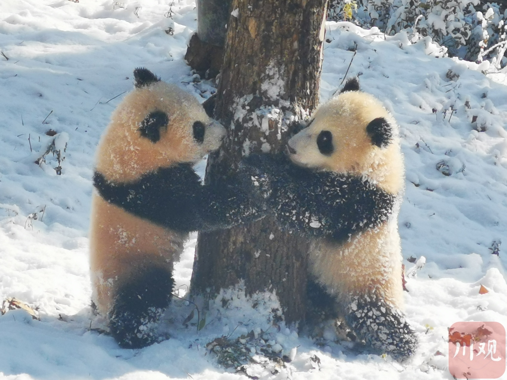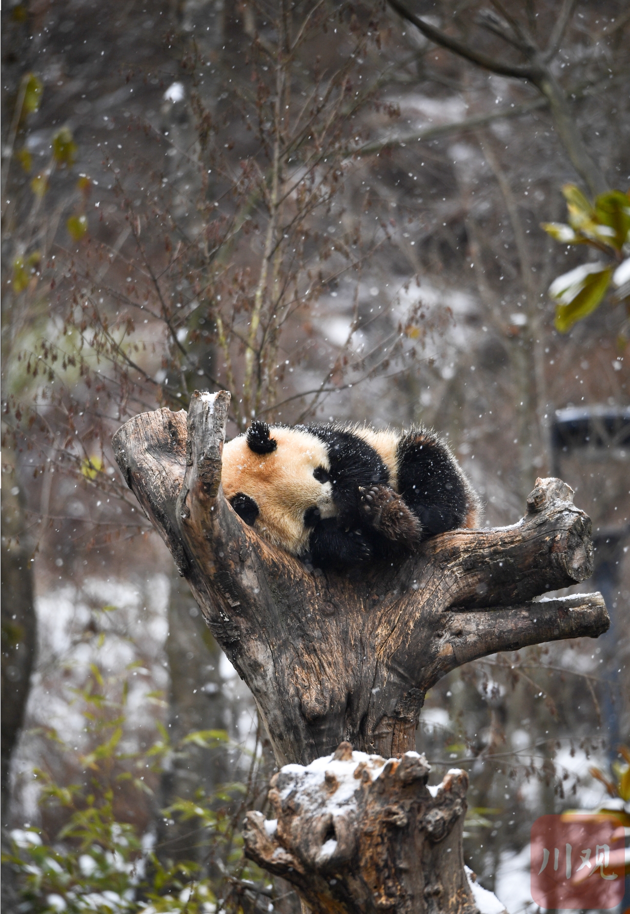 2022北京冬奥会吉祥物“冰墩墩”最近可太火了!现在,线上线下的售卖渠道已经“一墩难求”,而在大熊猫的故乡四川,也有不少“冰墩墩”!近日,中国大熊猫保护研究中心卧龙神树坪基地普降大雪,这里的大熊猫们也享受着冰雪带来的欢乐,雪地中的“冰墩墩”们各种撒欢,迎接漫天飘下的雪花。
