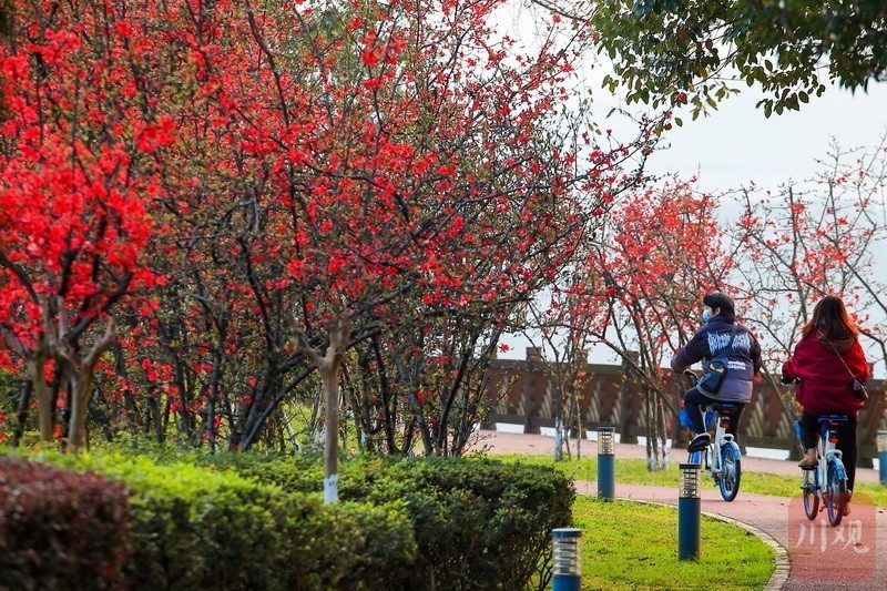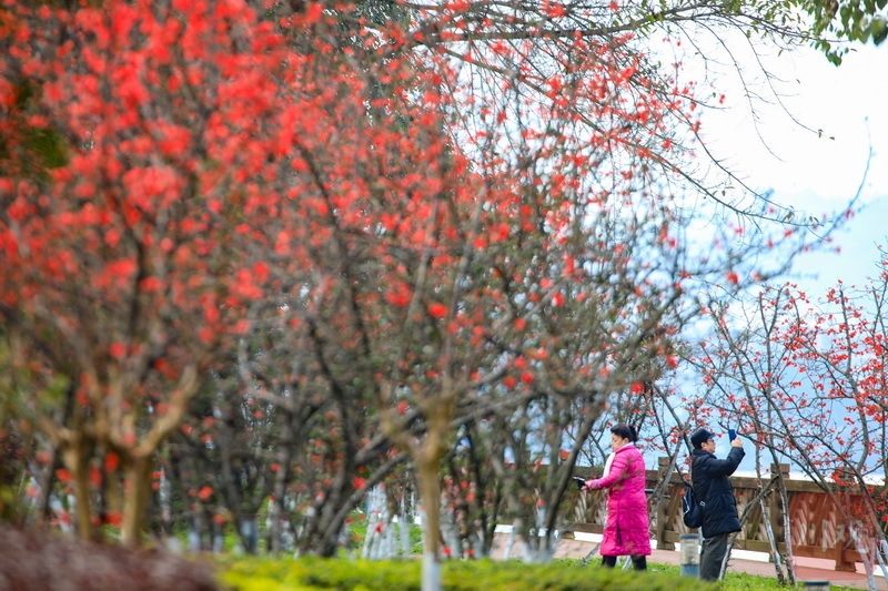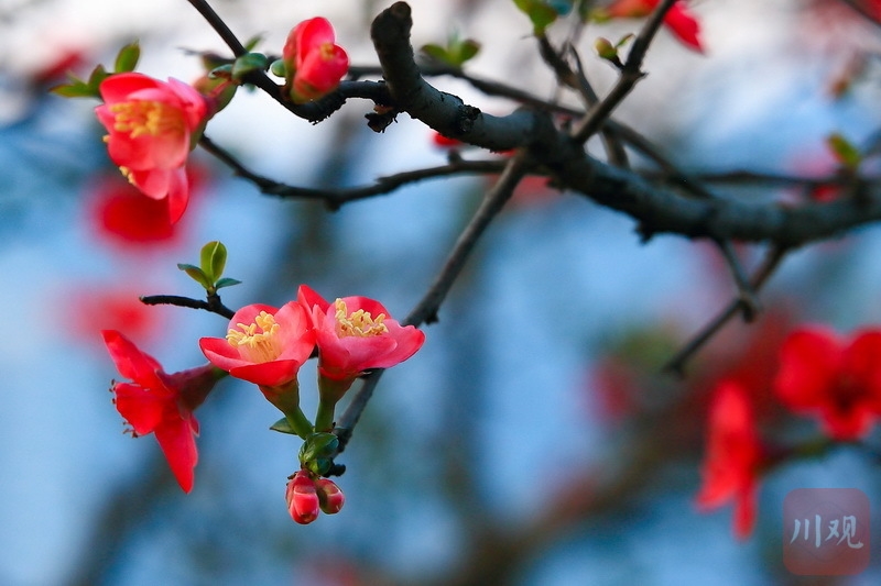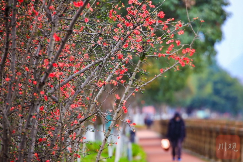 “昨夜雨疏风骤,浓睡不消残酒……”2月9日,走进初春时节的雅安雨城区街头,艳丽的海棠花次第开放,红得正当时。远远望去,热情似火的海棠花朵朵挂枝头,团团簇簇连绵成片,吸引了不少市民在花丛下驻足,观花赏春,其乐融融。