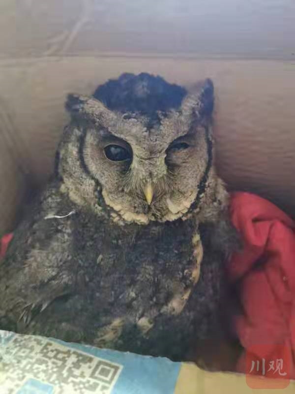 2月8日,沙湾区自然资源局接到福禄镇派出所电话称,福禄镇社区一儿童在玩耍时看到了一只猫头鹰,因被挂网上无法动弹,该儿童和家长一起把受困的猫头鹰带回了家中。因猫头鹰精神状态不好,无法飞翔,便求助于福禄镇派出所希望对这只猫头鹰进行救助。