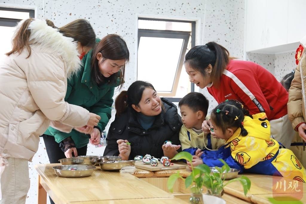 随着北京冬奥会比赛的火热进行,憨态可掬的冰墩墩也深受人们的喜爱,导致“一墩难求”。2月10日,在四川省泸州市龙马潭区的一所幼儿园内,老师们与孩子们共同自制着“冰墩墩”汤圆,在娱乐中尽享冬奥乐趣,为中国健儿加油鼓劲。
