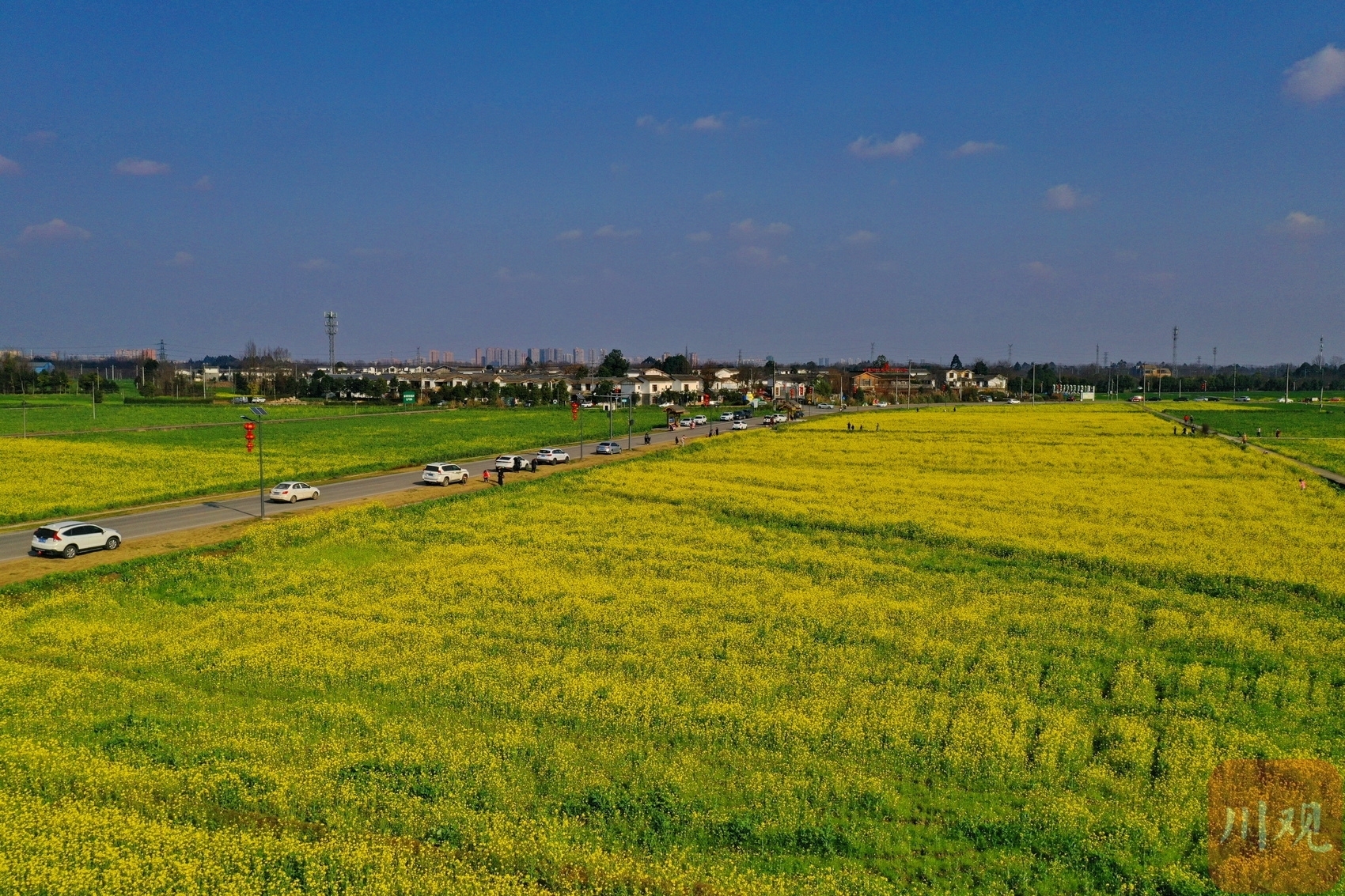 据了解,每到2月底至3月份,位于崇州市的稻香旅游环线就进入了一年当中最美的季节,这里的油菜花田绵延不断,一块块稻田和油菜花将一路的风景串连起来,一股春天般的气息迎面而来。