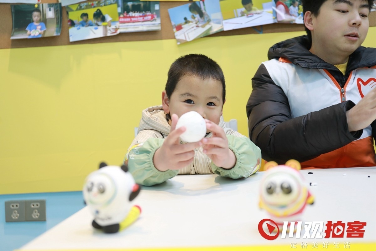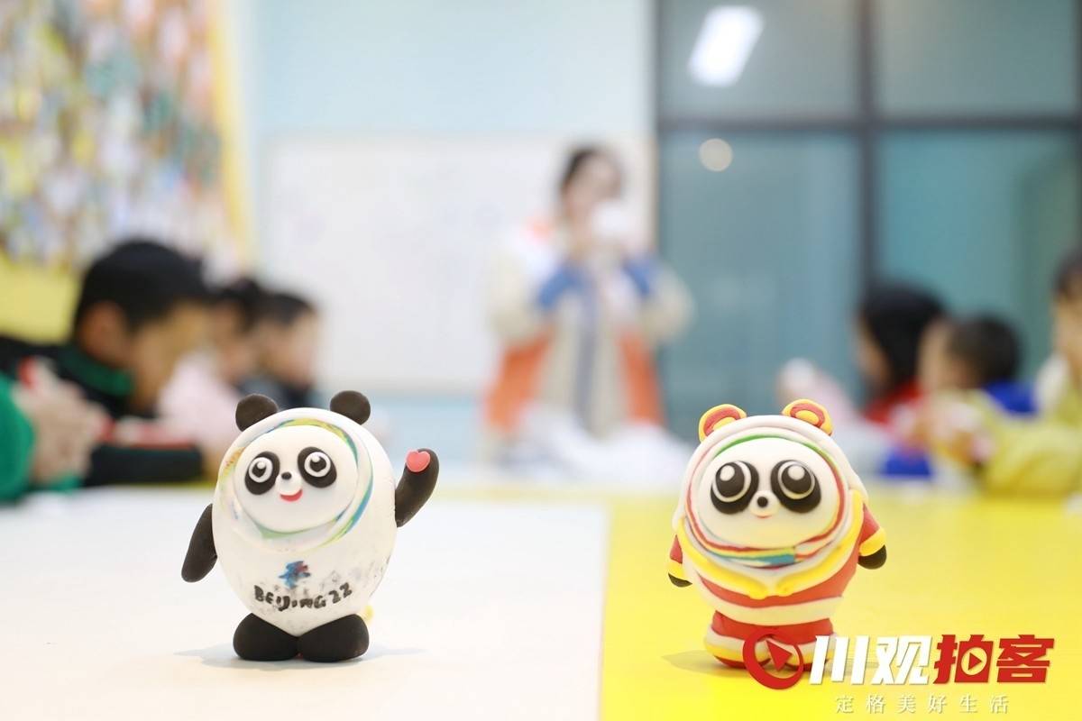 2月11日,在四川省泸州市龙马潭区安宁街道宇华豪庭小区内,龙马潭团区委组织青年志愿者同社区小朋友们共同制作超轻黏土版的“冰墩墩”玩偶,表达对冬奥会的美好祝福,自己动手实现“墩墩自由”。