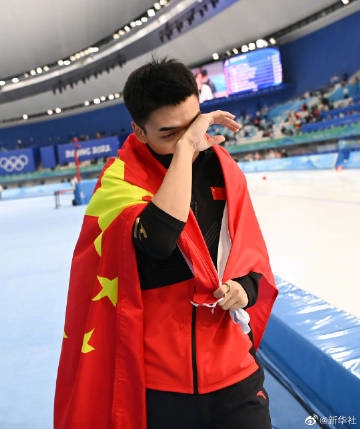 2月12日,高亭宇夺得北京冬奥会速度滑冰男子500米冠军,在开幕式上担任中国代表团旗手的他身披五星红旗庆祝。转发现场大图,为中国健儿点赞!(摄影:兰红光、武巍、王菲)