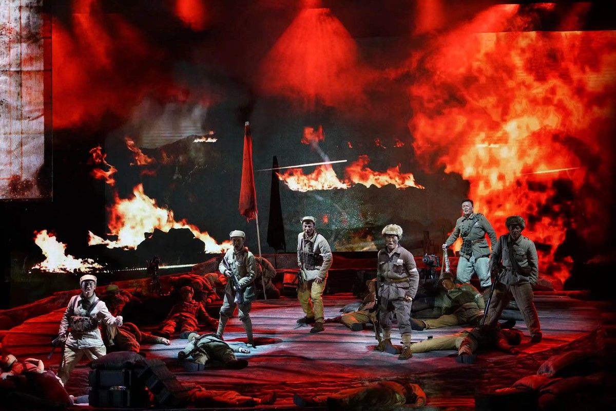 “雄赳赳,气昂昂,跨过鸭绿江!保和平,卫祖国,就是保家乡!”当晚,四川大剧院舞台空间的360度旋转交错,大型曲艺音乐剧《成都家书》拉开帷幕,该剧获得四川艺术基金支持,也是2021年度四川省重大文艺项目,由知名编剧董玉方执笔,北京人艺导演杨佳音执导、四川曲艺研究院青年导演毛军豪参与导演,作曲家顾磊负责音乐。该剧以抗美援朝战争中十五军入朝作战为历史背景,讲述四川男儿在异国他乡英勇战斗、保家卫国期间,通过一封封“家书”传递亲情,弘扬家国情怀的动人故事。2021年7月22日至24日,《成都家书》在成都新声剧场连演三场,场场爆满,让不少观众意犹未尽。