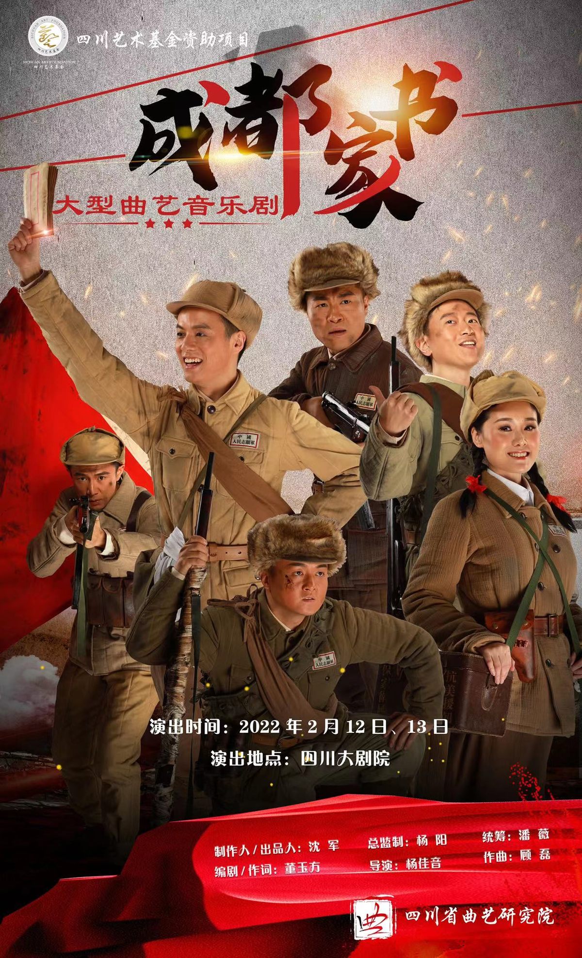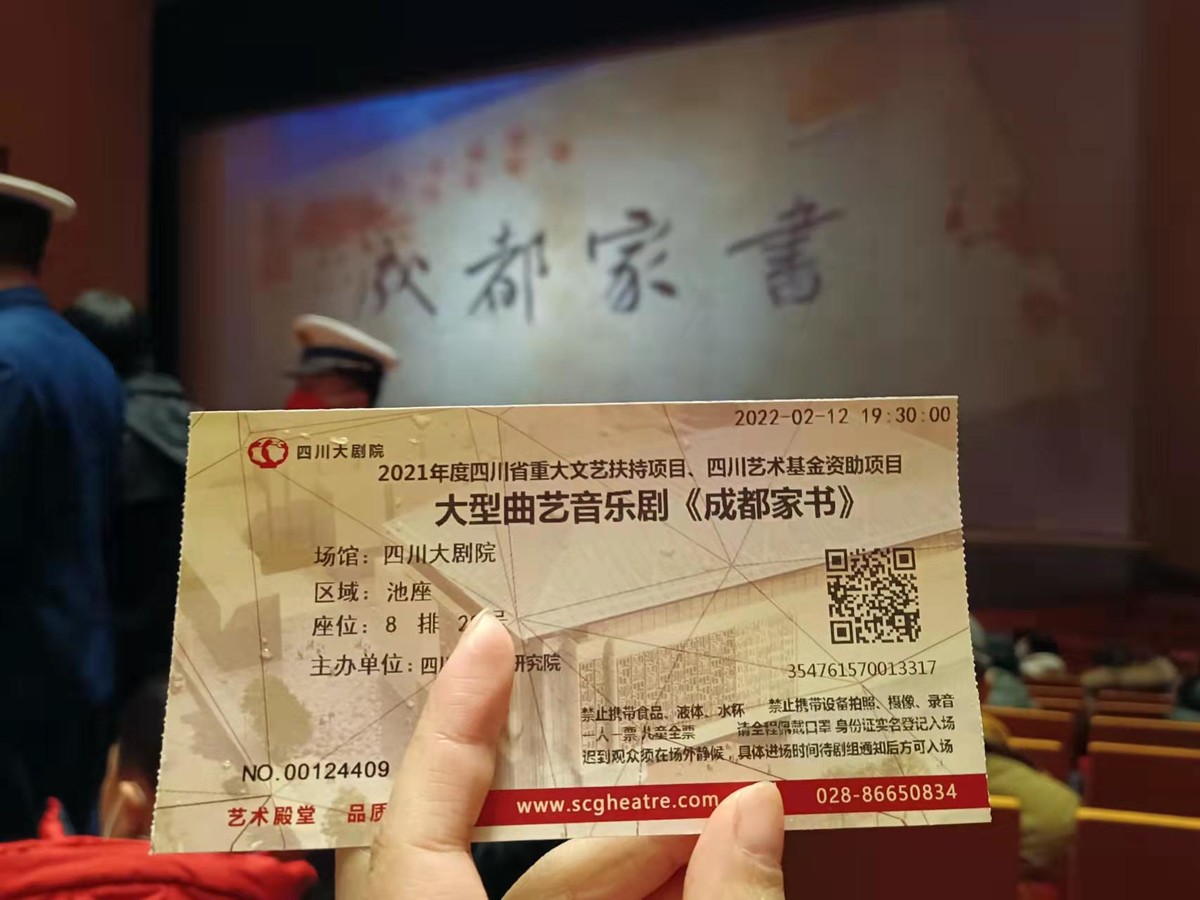 2月12日时值新春开工后第一个周末,由四川省曲艺研究院创排的大型曲艺音乐剧《成都家书》将分别在四川大剧院、成都新声剧场连演4场,为当地老百姓送上新春文化贺礼。该剧以抗美援朝战争作为历史背景,邀请了近800名群众及四川省森林消防总队百余名官兵观看了演出,感受爱国主义精神。