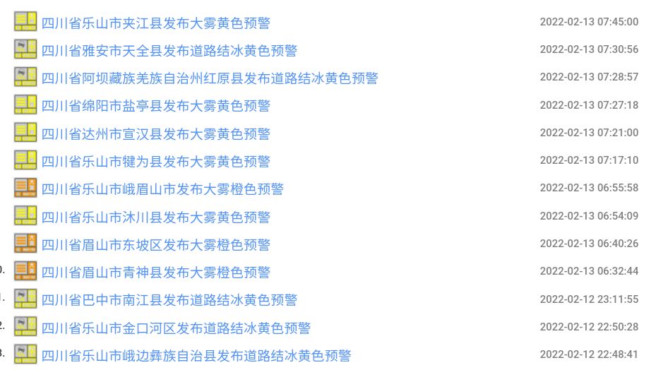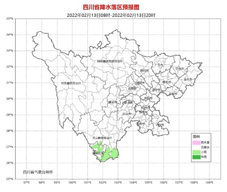 四川省气象台预计,24小时内,最高气温:西部12~14℃,其余地方14~17℃;最低气温4~7℃。
