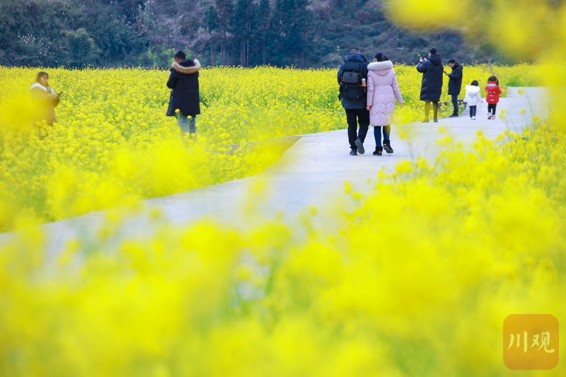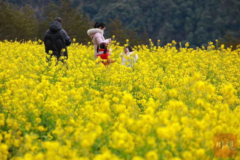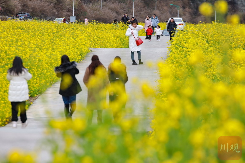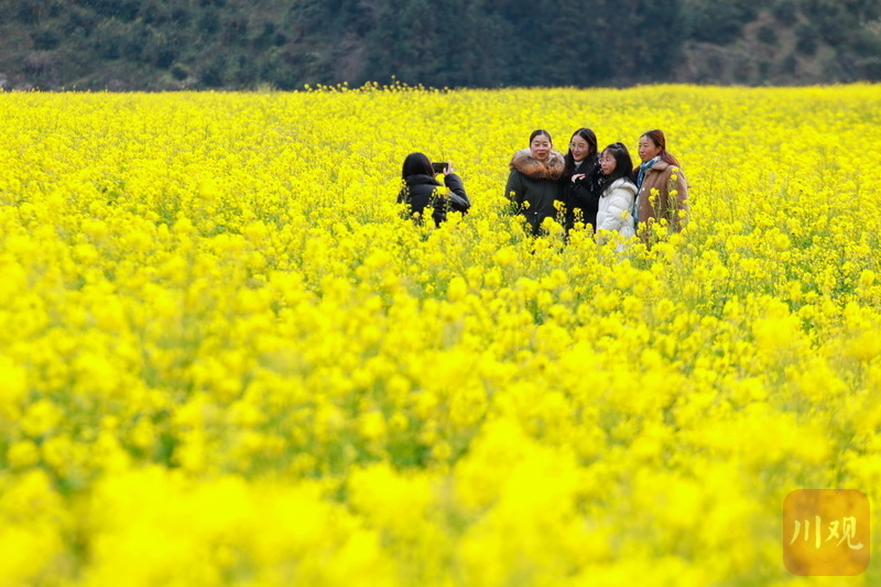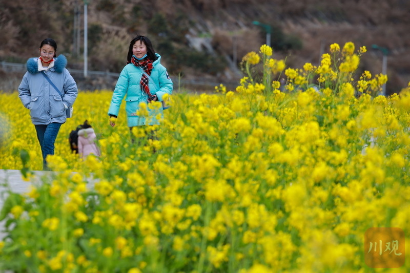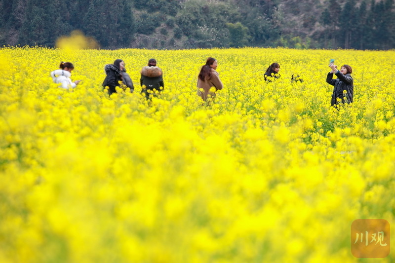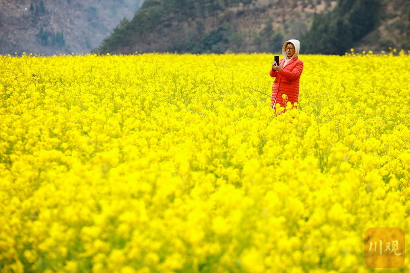 初春时节,雅安石棉县高山上的“银装”未褪,山谷间一簇簇的油菜花已然绽放“上线”。视频和图片为2月12日下午,在石棉县王岗坪乡连片的油菜花田内,金黄的油菜花在习习春风中一波又一波地摇曳,散发出淡淡的清香,过往游客和当地市民纷至沓来,感受春天的气息。