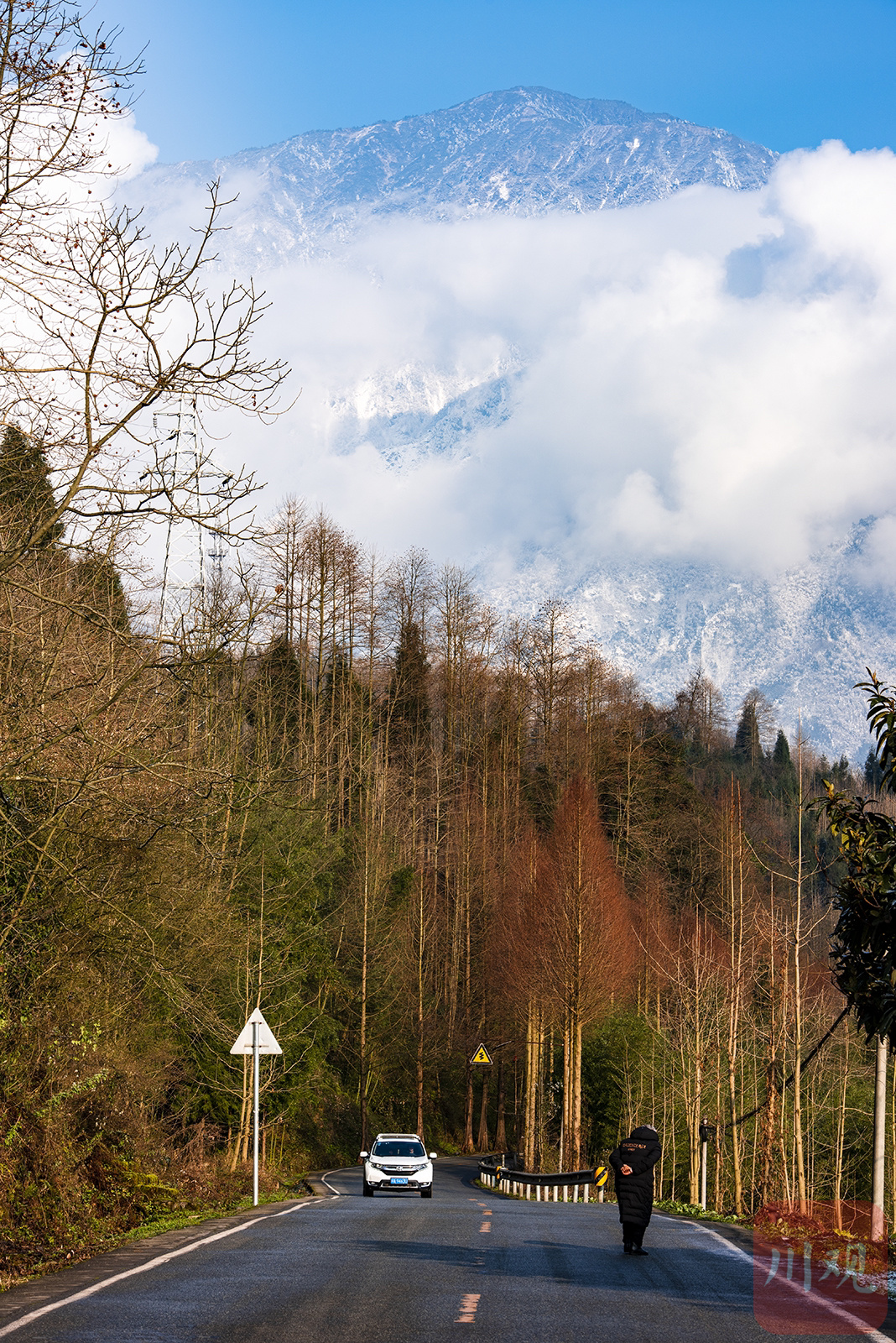 近日,随着天气放晴,位于成都市彭州市北部的龙门山湔(jiān)江河谷,迎来了一场雪山盛宴。沿河谷而上,远近雪山起伏环绕,雄奇壮美,在蓝天下闪耀着圣洁的光辉,吸引了众多游客前来观赏。