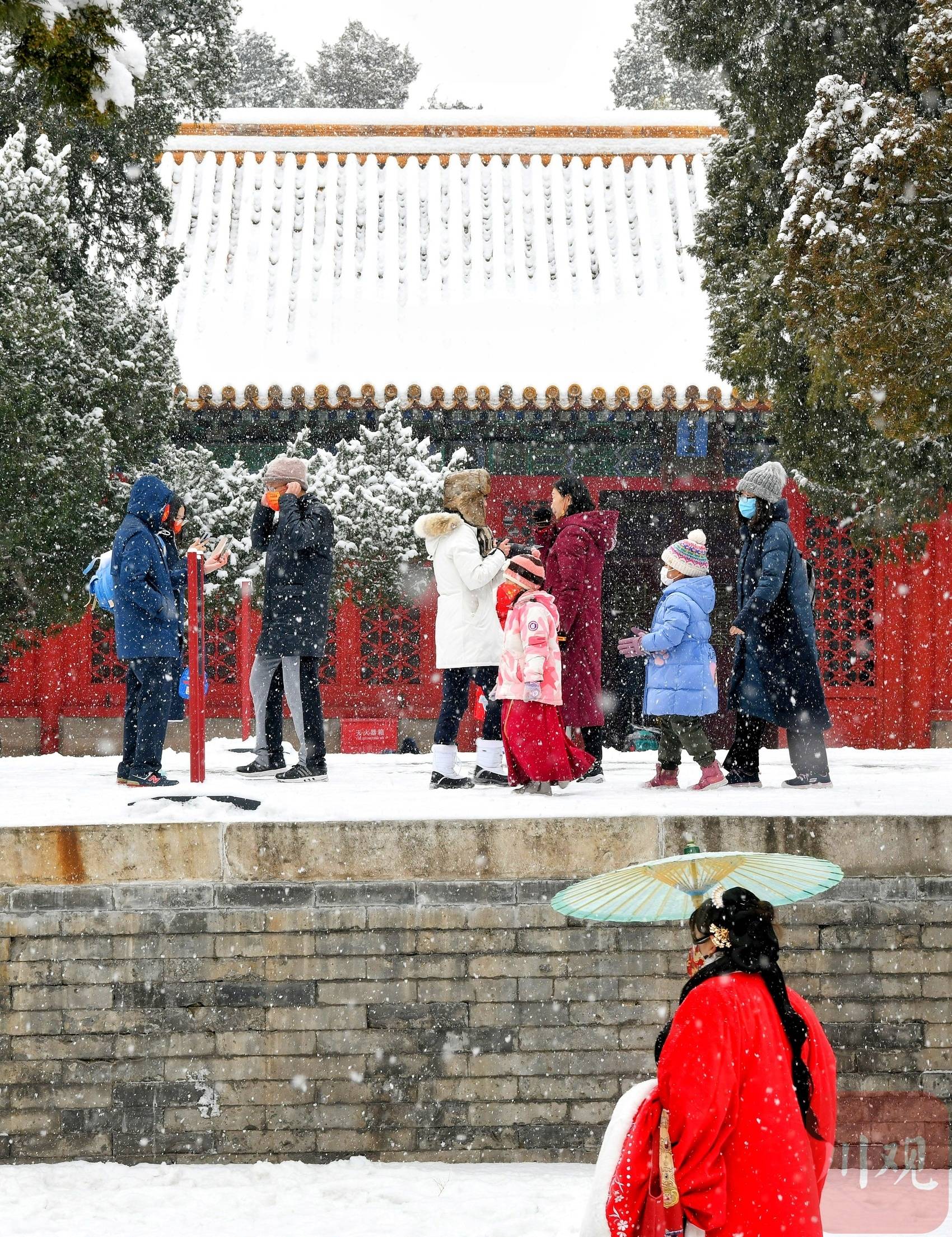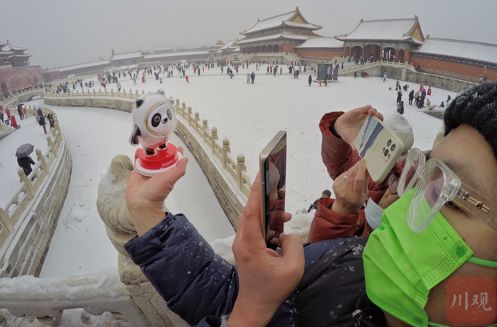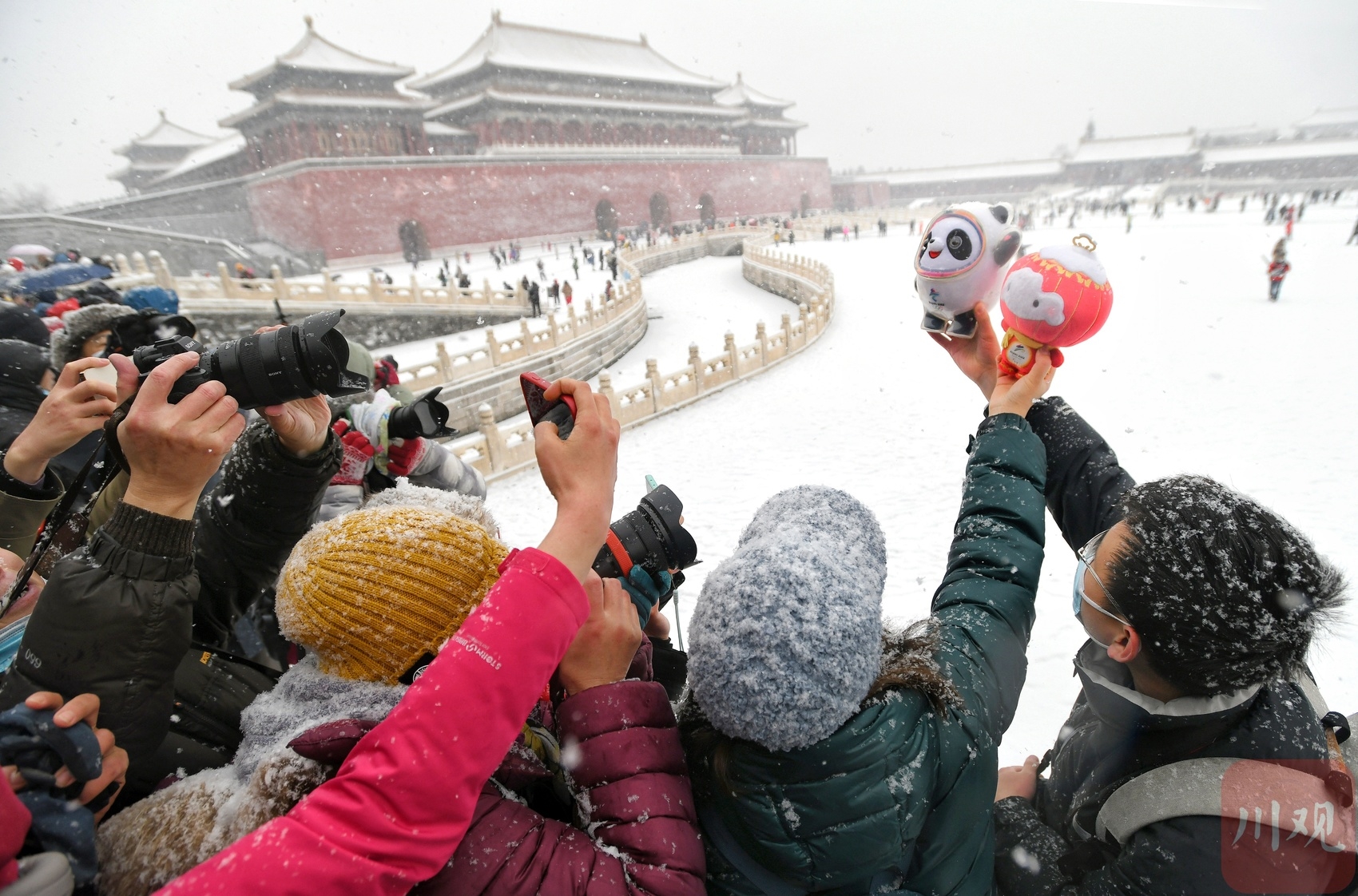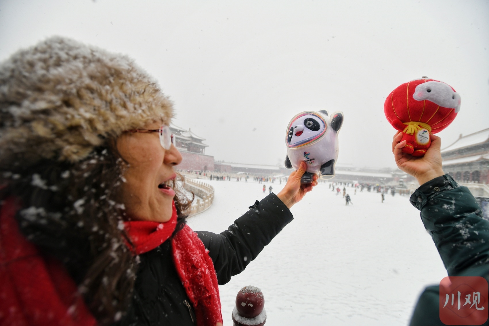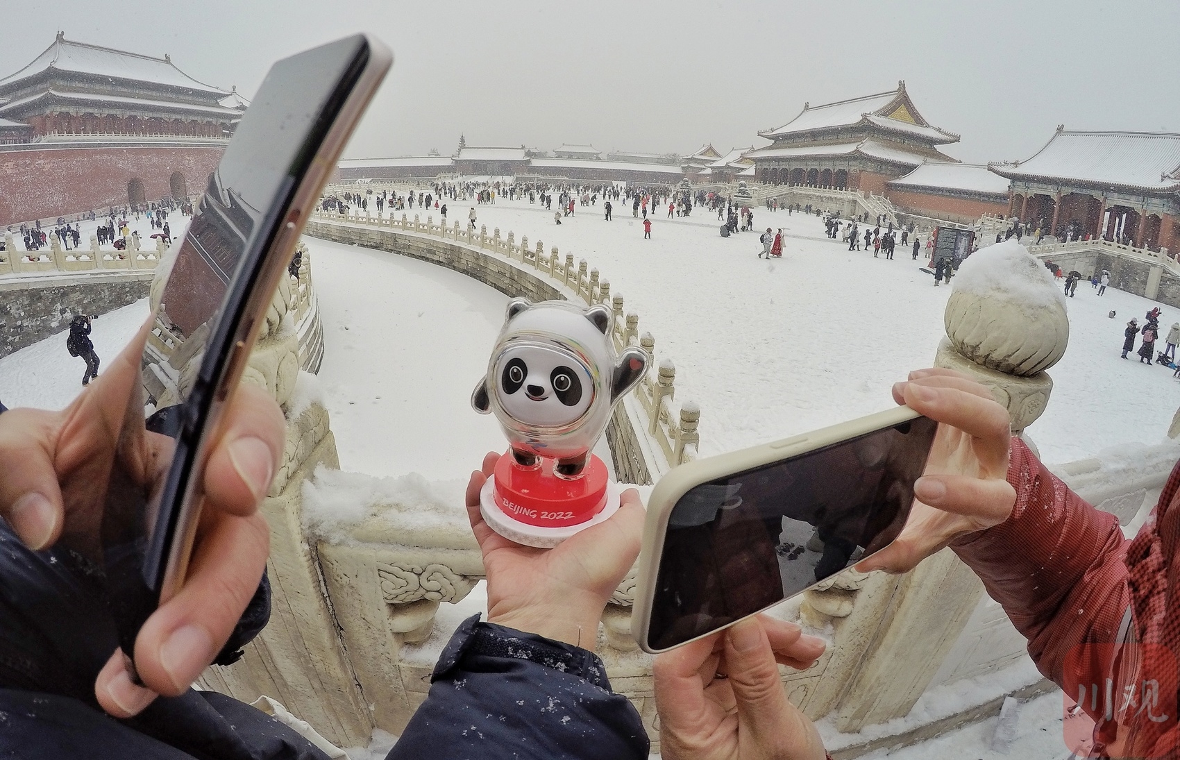 2月13日,冬奥逢瑞雪,北京迎来了虎年的第一场大雪。这座双奥之城的各大公园的雪景美轮美奂令人陶醉。在故宫,当游客从怀里取出“冰墩墩、雪容融”,顶流的冬奥吉祥物瞬间就成焦点,争相拍照留影的游客络绎不绝。