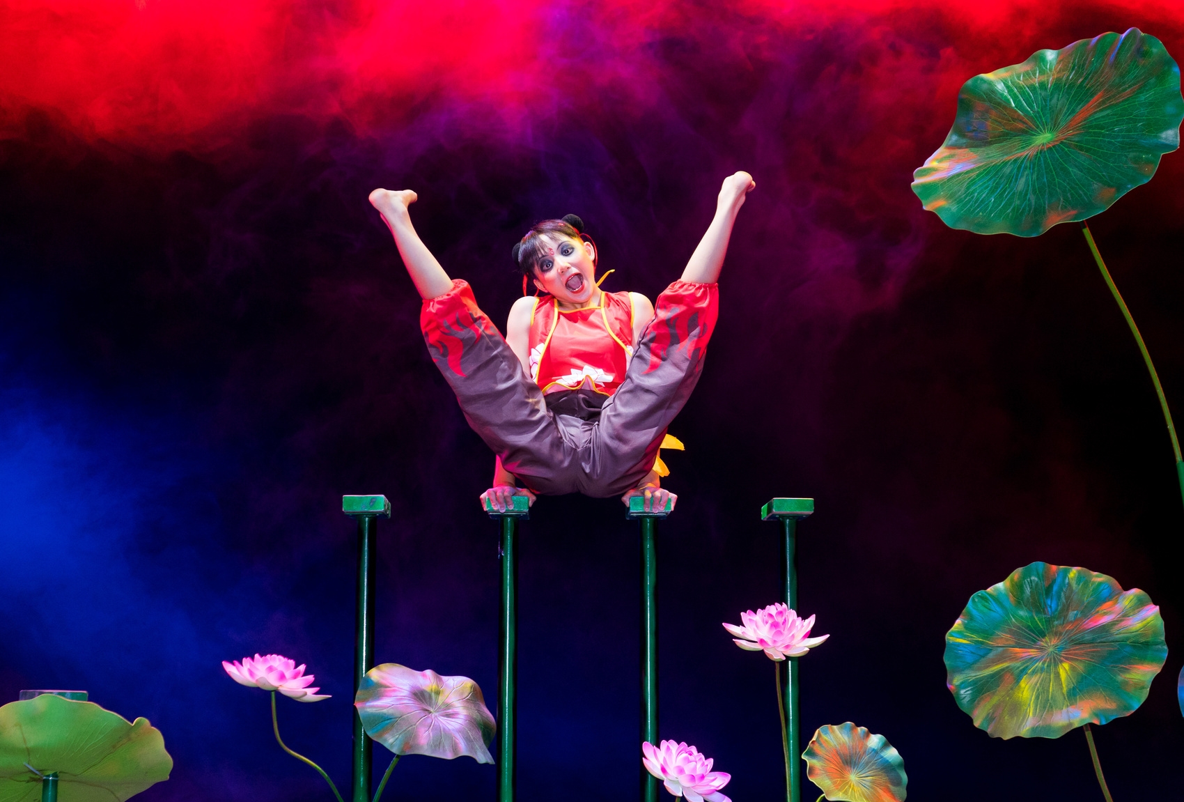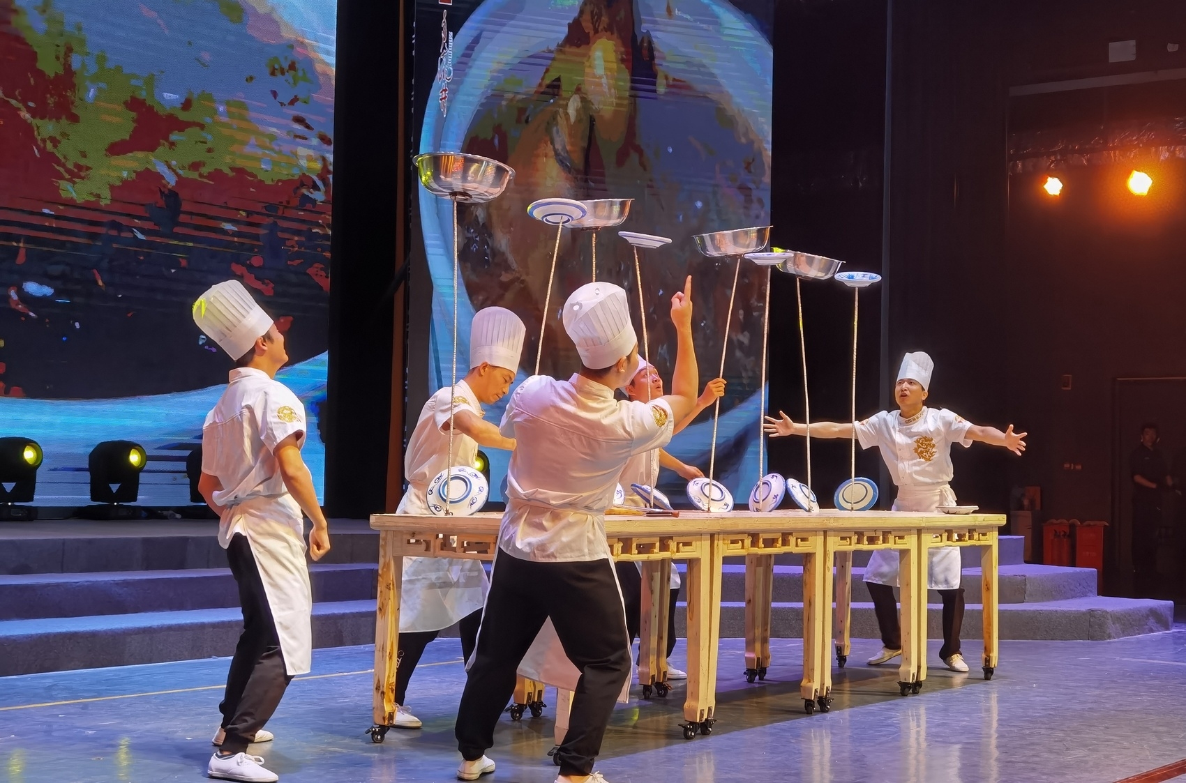 《荷塘精灵—哪吒》以杂技倒立技巧和风趣幽默的表演形式,对哪吒故事进行新的演绎,以杂技的方式讲好中国故事,挖掘传统文化的精髓,打造杂技“新国潮”;杂技《快乐厨房》,“厨师们”风趣幽默的表演拉开情景剧帷幕,大家用各自手中的厨具,在后厨展开比赛,演员们时而手转盘子,时而脚蹬簸箕,时而头顶铁锅……通过相互炫技来展示劳动技能,奏出别开生面的厨房交响曲。
