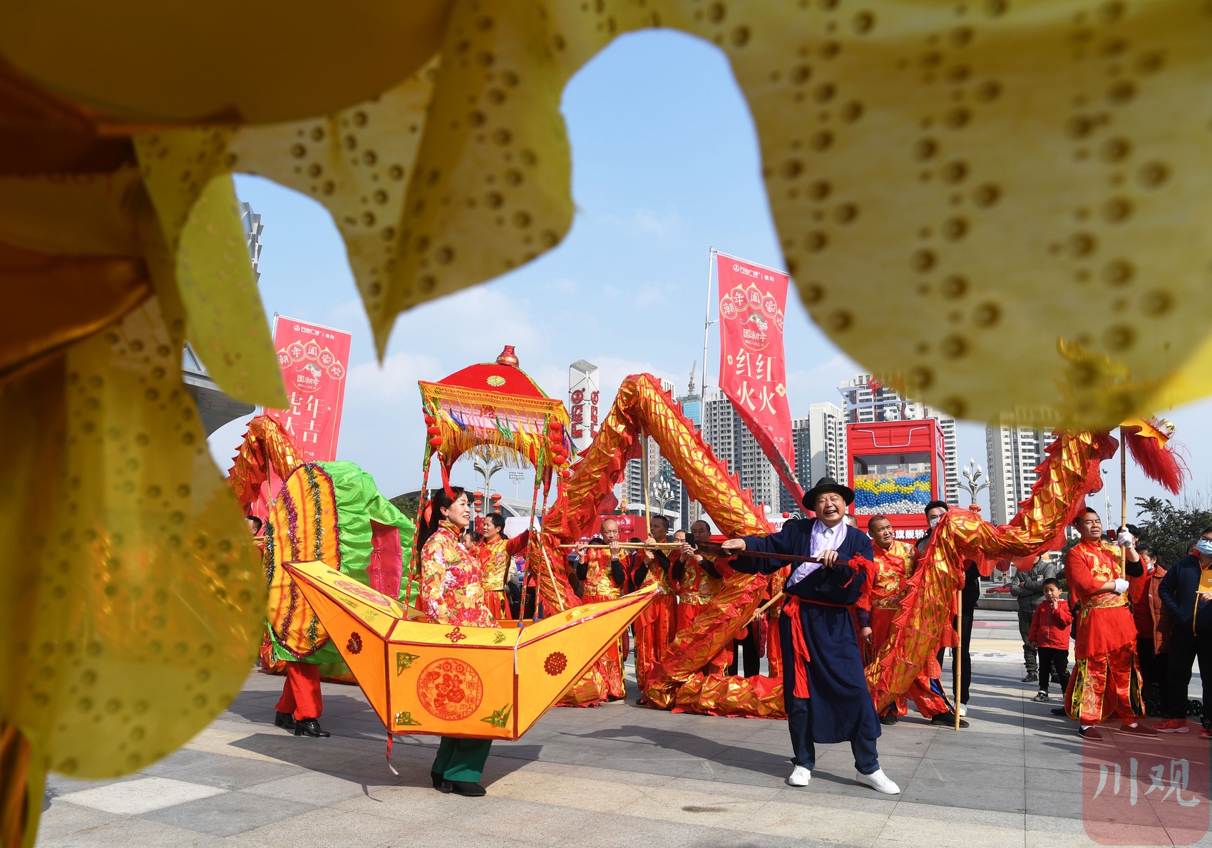 2月15日,德阳市旌阳区举行“我们的节日·欢乐过元宵”传统文化系列展示活动。舞龙舞狮、采莲船、笑脸和尚、传统戏剧装展示……多种丰富的游园活动让当地群众在欢乐中度过元宵佳节。