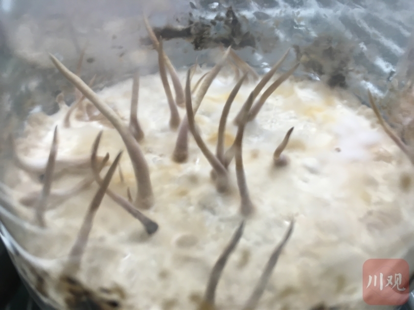 “我们最近突破了虫草子实体高密度培育技术,一个瓶子里最多能培养100根。”陈玉龙说。