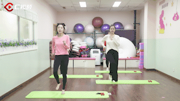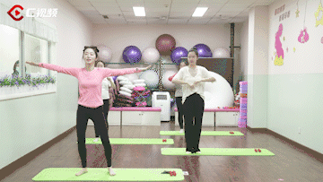 3.扩胸运动+脚跟点地:可预防胸部下垂、美化胸部线条。手脚一起运动,增加协调性。(孕妈妈做可为产后母乳喂养做准备)