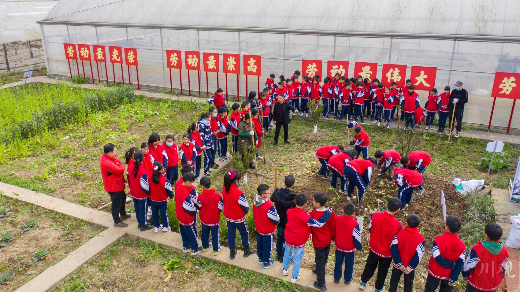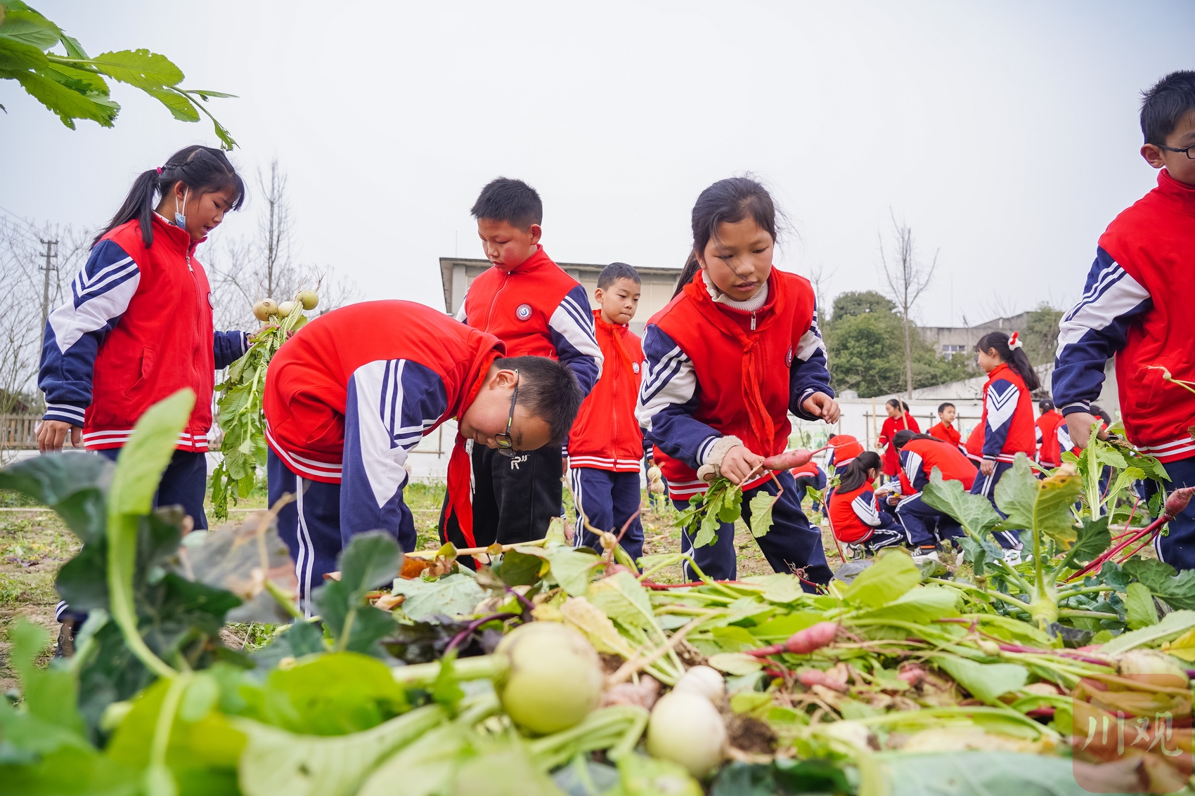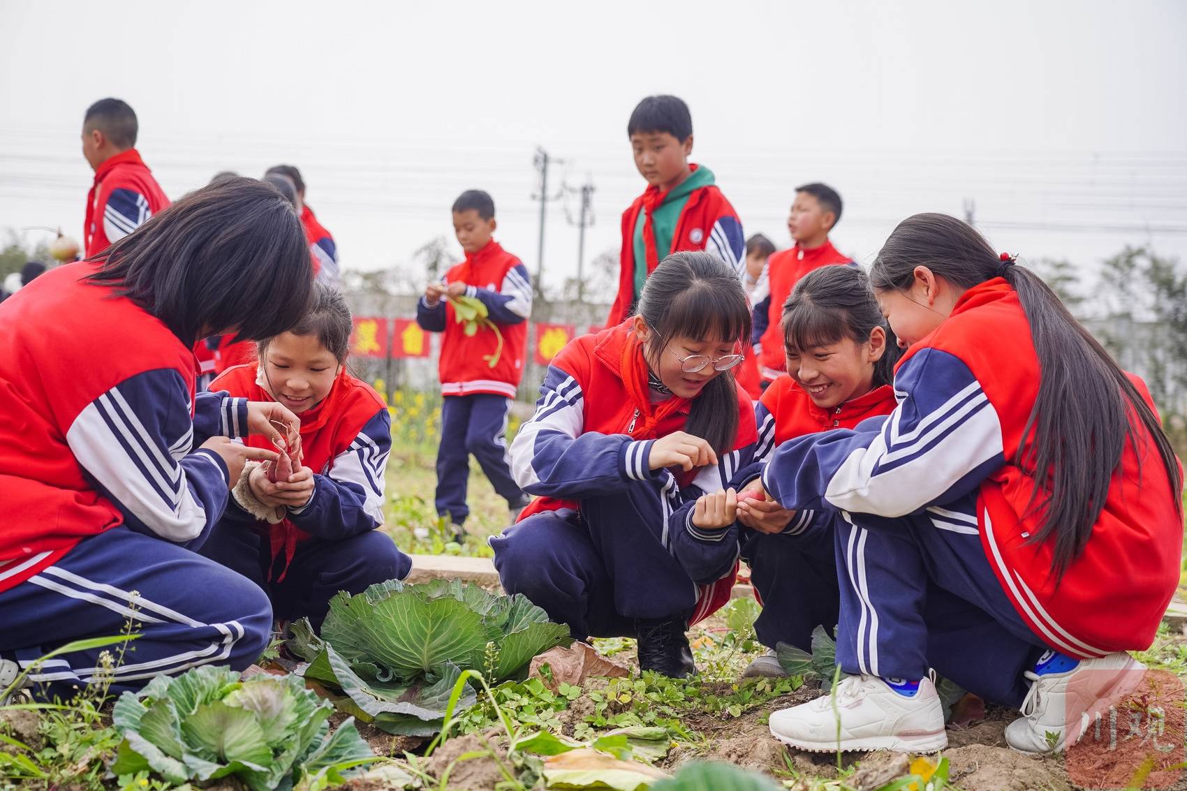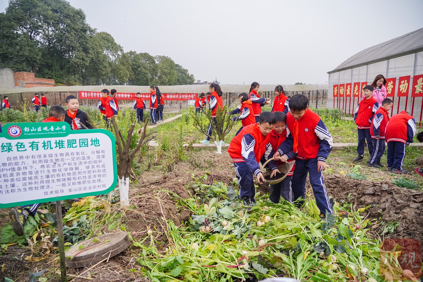 2月16日,眉山市彭山区观音小学的学生们正在学校的农事园学习一项新技能——有机堆肥,这便是孩子们特殊的是开学第一课——《绿色田园课堂“我是堆肥小达人”》。