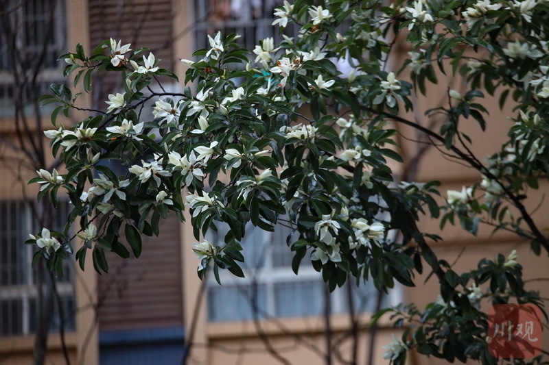 记者了解到,这种花白如玉的树叫深山含笑,又名光叶白兰、莫夫人玉兰,为常绿乔木,是中国特有的树种,早春时节开花,花朵大而美丽,洁白素雅,常作庭荫树或行道树。