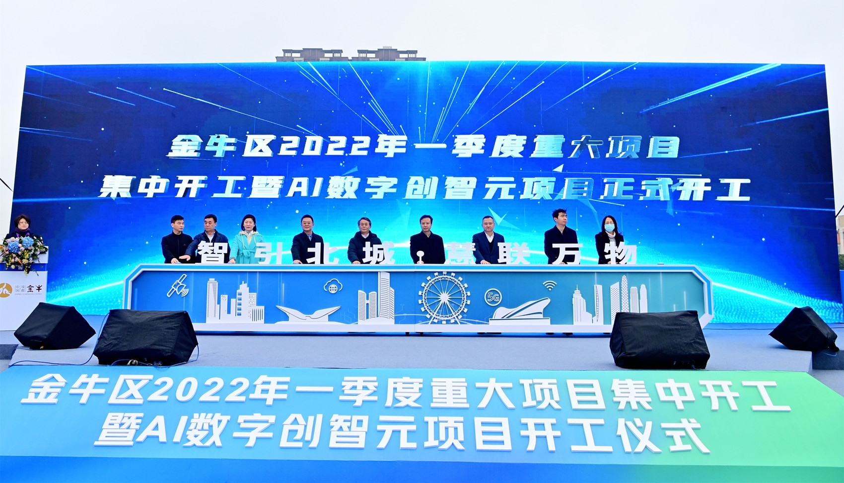 2月18日上午,“智引北城慧联万物”成都市金牛区举行2022年一季度重大项目集中开工暨AI数字创智元项目开工仪式。以AI数字创智元为代表的10个重大项目开工,总投资额101.1亿元。