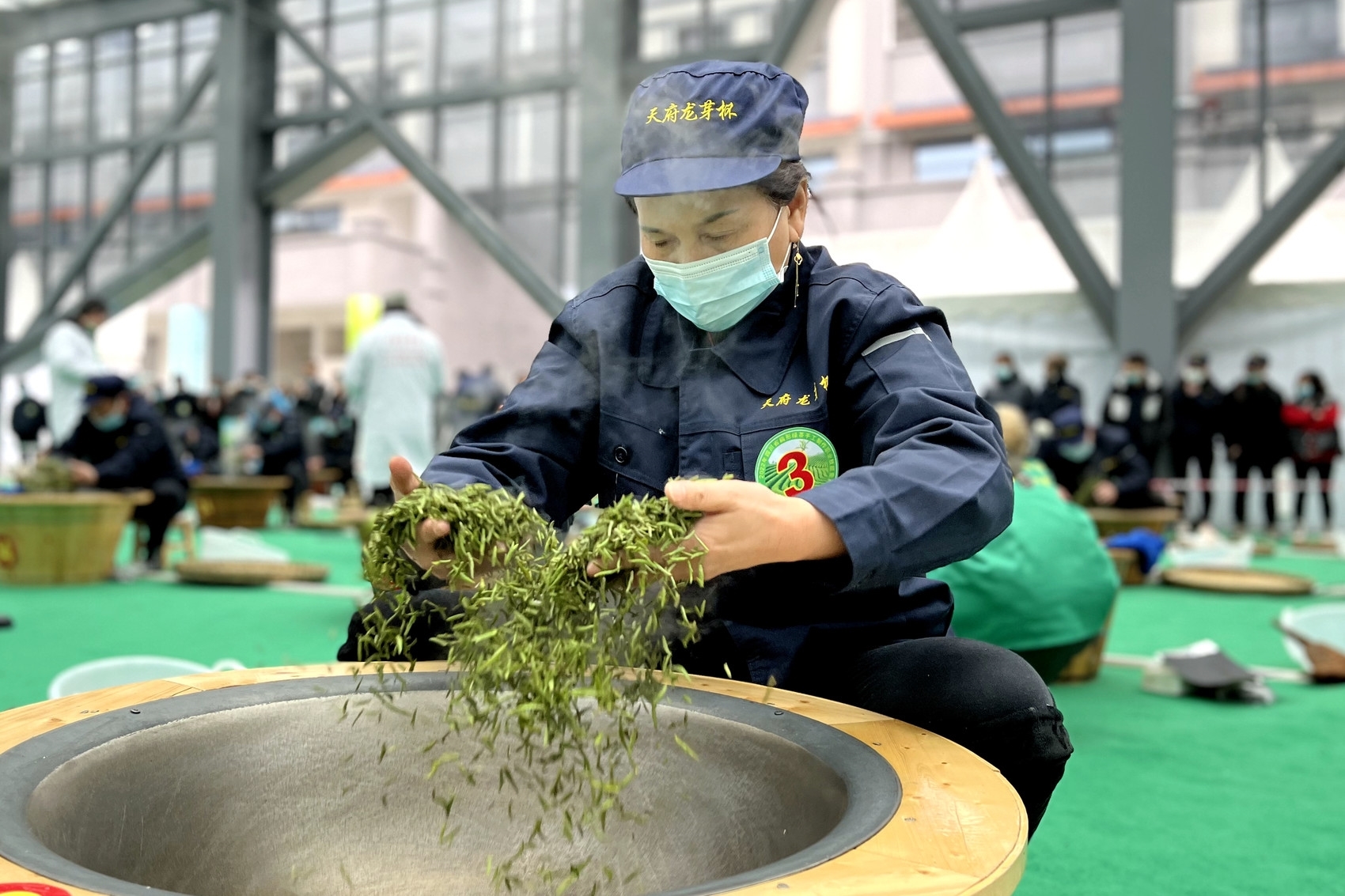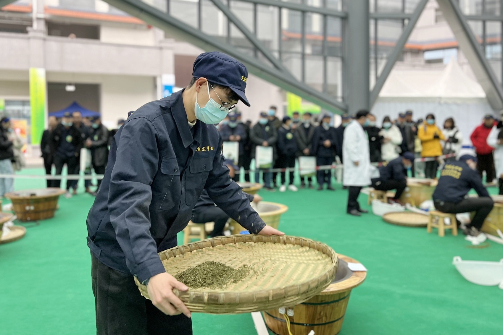 “温度不同,对于茶叶杀青的品质有很大影响。”与制茶“老师傅”相比,较为年轻的选手吴松尽管在制茶经验上不占优势,但“自我感觉发挥还可以,茶叶杀青的颜色以及压条的形状,比平时练习制茶时都要好”。