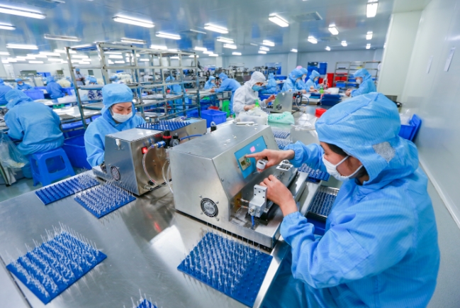 2月18日,位于宜宾市南溪区的四川普瑞斯生物科技有限公司里一片繁忙的生产景象,生产线全部开动,工人们有条不紊地进行输液器组装、检验等作业。企业负责人雷兵告诉记者,得益于南溪区良好的营商环境,同时背靠四川医用卫生应急产业基地建设的产业优势,企业能够在这里放心投资,专心经营,“今年订单延续了去年30%左右的增长势头。”