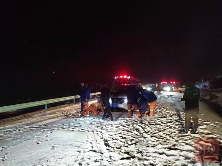 “真是太感谢你们了,不然我都不知道怎么办了。”2月21日晚10点,一名小轿车司机紧紧拉住消防救援人员的手感激的说到。
