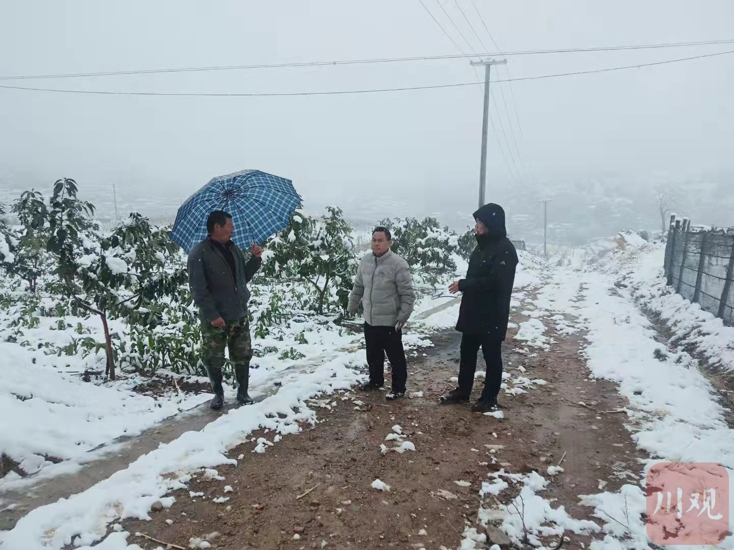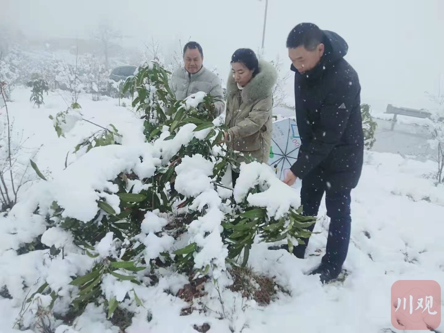 仁和区大龙潭乡裕民村种了14000余亩芒果和400余亩牛油果。2月22日一早,攀枝花市农林科学研究院的技术人员赶到村里。“从早上8点半到中午12点多,村里一直在下鹅毛大雪,芒果花和枝干上的积雪有2、3厘米厚,一些树枝被积雪压断了。”攀枝花市民宗干校校长杨文军跟着一起进村了解情况,“现场让人担心。”