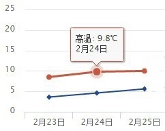 2月23日至25日四川全省平均最高/最低气温预报图