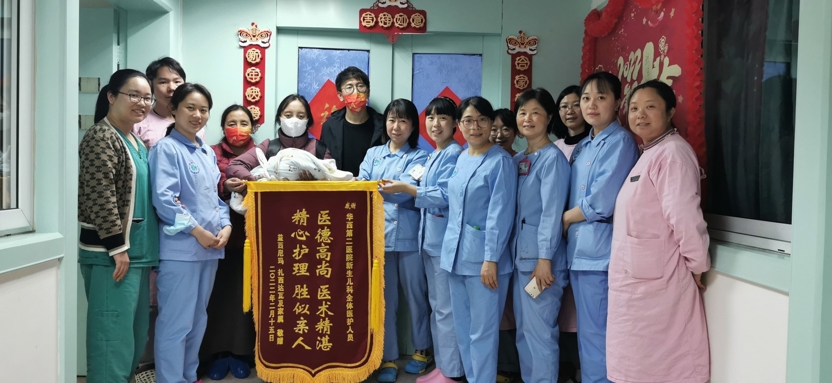 2022年2月15日,元宵佳节。次吉卓玛夫妇和孩子的奶奶一大早就赶到了华西第二医院新生儿科NICU的病房。这是一次被推迟了90天的团聚。这时候的小四九体重已经长到了2120克,他手舞足蹈的样子惹得大家开怀大笑。更重要的是,小四九的身体各项指标也已经基本达标,满足了出院的条件。