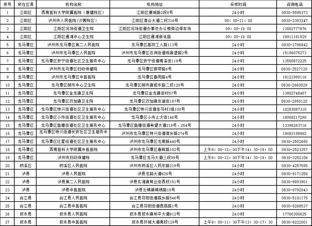 新冠病毒核酸检测采样机构名单