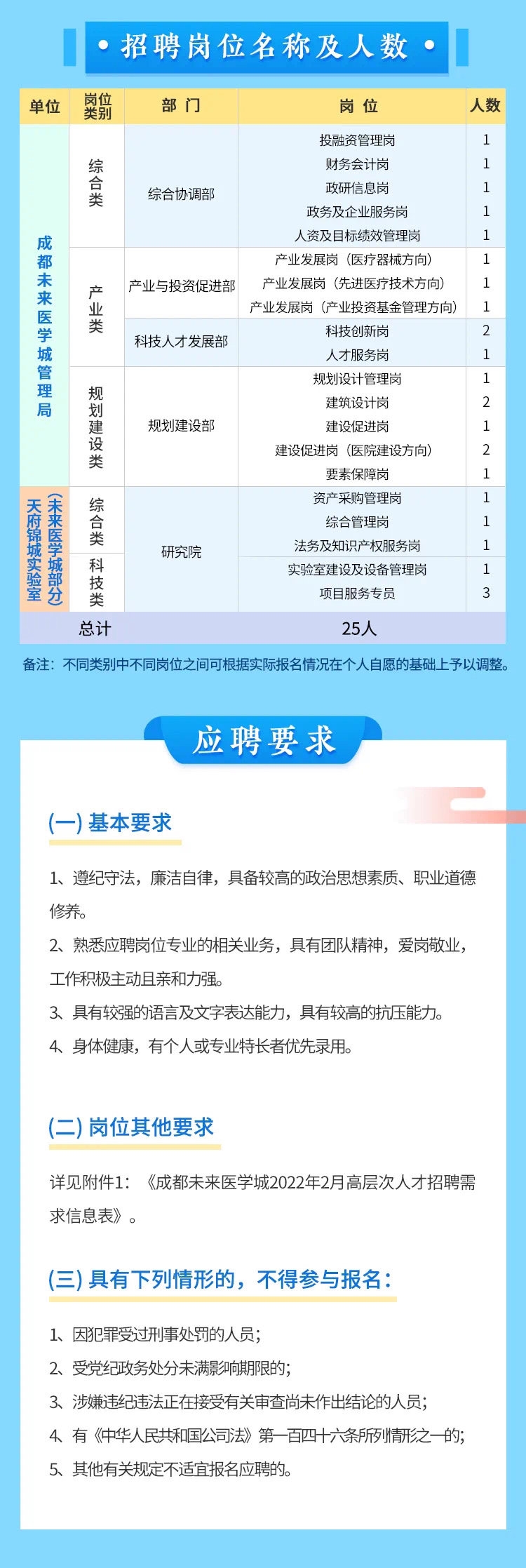 2月23日,记者从成都未来医学城管理局获悉,根据工作需要,成都未来医学城管理局和天府锦城实验室(未来医学城部分)面向社会公开招聘25名高层次人才。