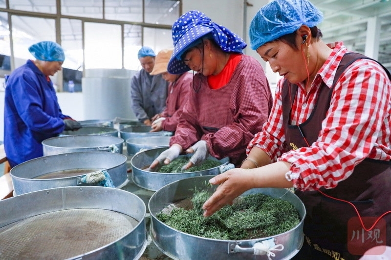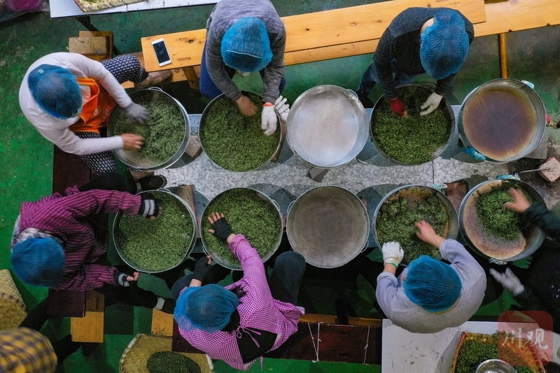 2月24日,雅安市名山区跃华茶厂内,茶叶工人们已经开始新一年的春茶生产,随着鲜叶源源不断地送入生产线,茶叶清香顷刻弥漫车间。