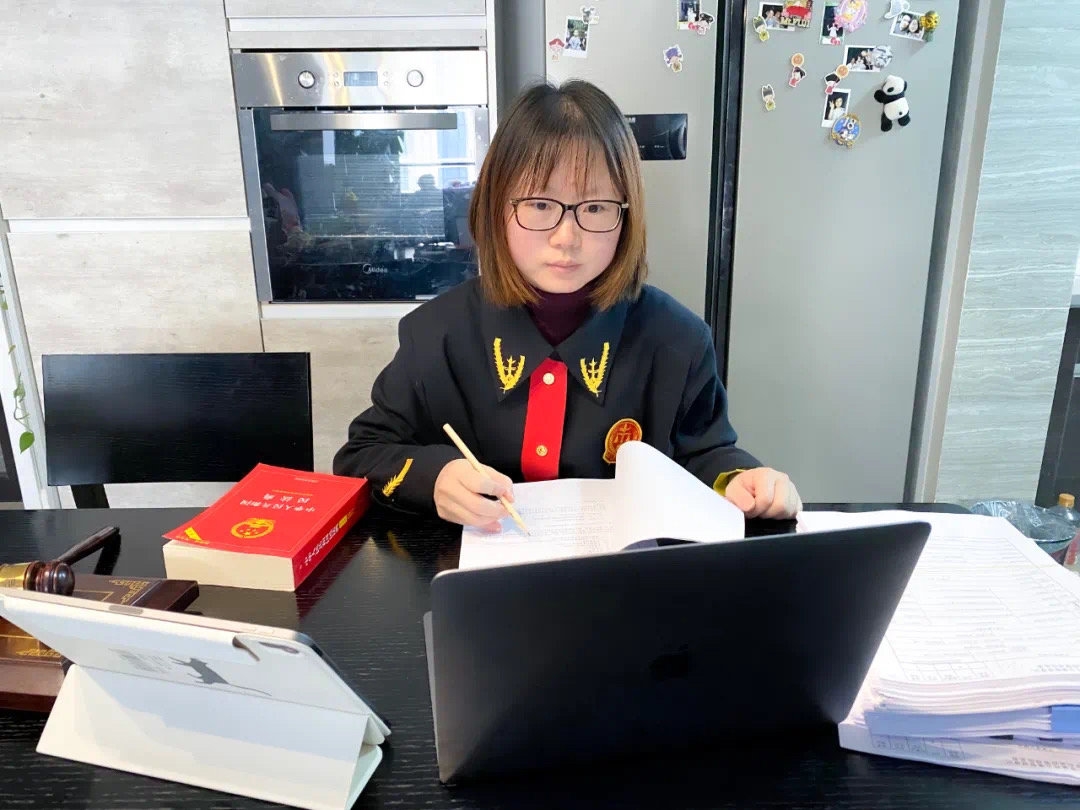 本案原定于2月24日开庭审理,但遇疫情,承办罗秦瑶所住小区被纳入封控区,无法线下开庭。是延期审理还是另寻解决之道?经法院同意,开庭当天,罗秦瑶在家中布置起了临时审判席,透过镜头,在线开庭审理了本案。