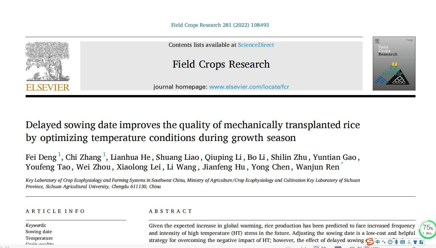 2月25日,记者从四川农业大学获悉,近日,四川农业大学任万军教授团队在国际农林科学主流学术刊物《大田作物研究》(Field Crops Research)在线发表了最新研究成果“Delayed sowing date improves the quality of mechanically transplanted rice by optimizing temperature conditions during growth season”(《推迟播期通过优化生长季温度环境提升机插水稻稻米品质》),这项研究为提升四川机插稻米品质找到了路径。