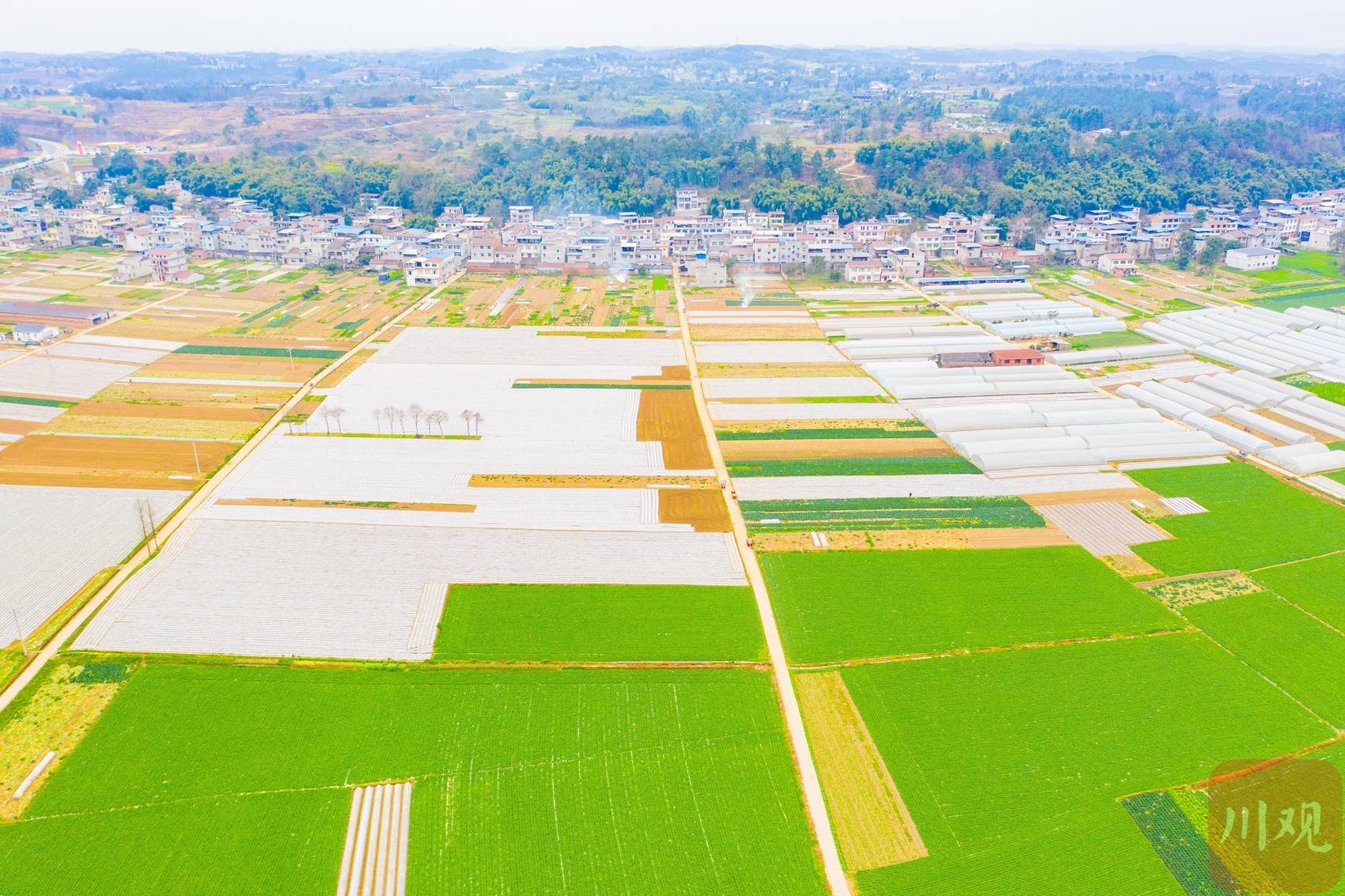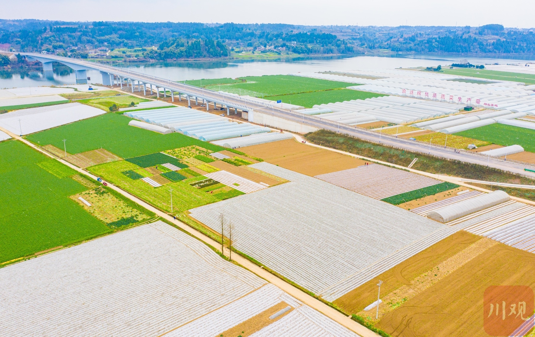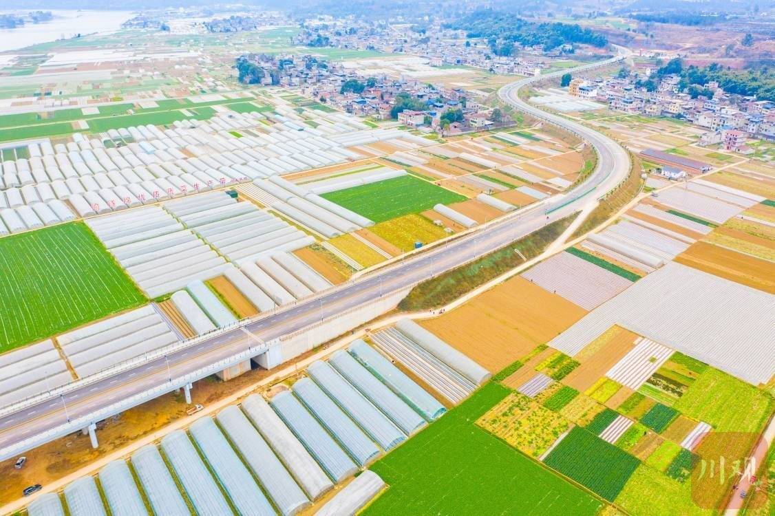 从高空俯瞰,一片片菜地、一排排大棚整齐排列,沿着涪江向远处延伸,这里就是渝遂绵优质蔬菜生产带船山基地。“高质量打造成渝两地‘菜篮子’,我们正在渝遂绵优质蔬菜生产带船山基地的老池镇、唐家乡一带建设‘遂潼涪江蔬菜乐园’,主要包括生态环境保护带、产村融合示范带‘两带’,以及优质蔬菜生产区、巴蜀乡村宜居区、科研加工交易区‘三区’,预计6月底完成计划任务。”遂宁市船山区农业农村局相关负责人介绍。