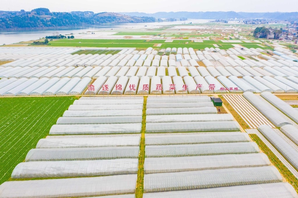 2月23日,遂宁市船山区老池镇,渝遂绵优质蔬菜生产带船山基地核心区,现代化蔬菜大棚成片分布。
