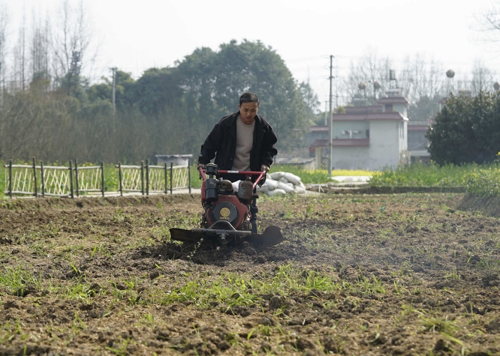 2月26日,射洪市沱牌镇龙泉村万物苏萌山水醒,农家岁首又谋耕。