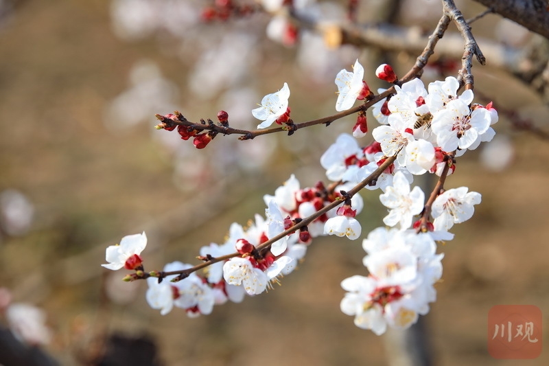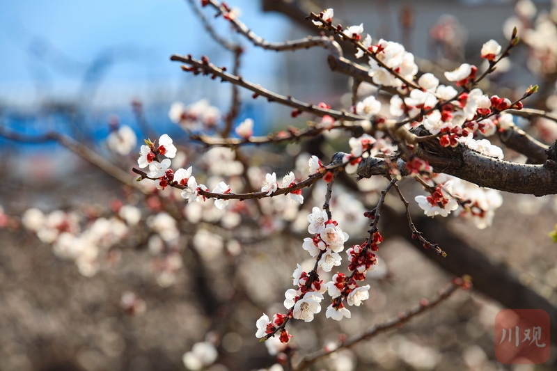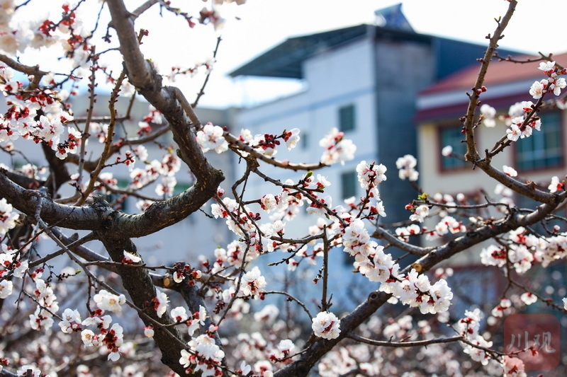 2月28日,走进初春时节的雅安汉源县九襄镇,大片的樱桃花压满枝头开得正盛,白里透粉的杏花也迎春而来,春花飞舞、春意盎然,成为花海果乡——汉源九襄上线的第一波春意。