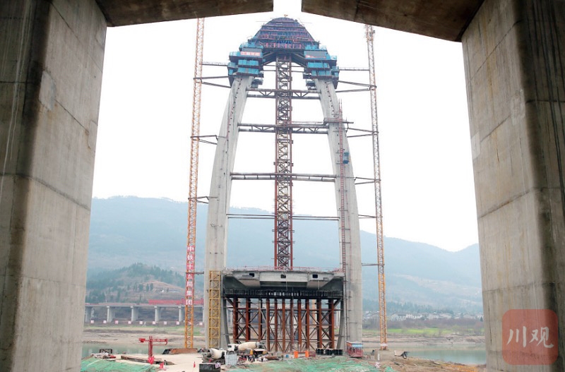 2月10日上午,随着最后一立方米混凝土顺利浇筑成功,广元市摆宴坝嘉陵江大桥主塔成功封顶,这也意味着该桥今年年底前有望通车。
