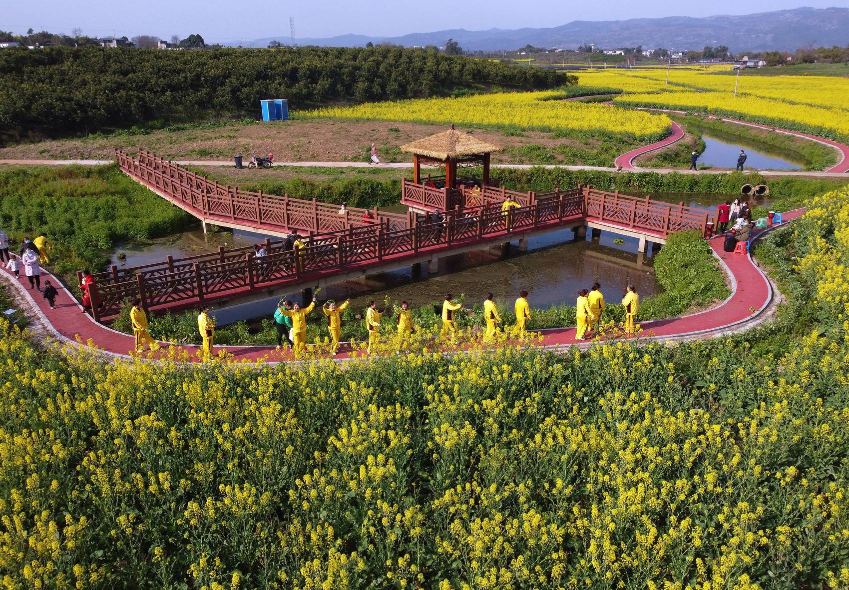 3月1日,成都金堂县2022年踏青赏花旅游季系列活动在金堂县三溪镇万亩油菜花田拉开序幕。为做好常态化疫情防控,此次活动设置了“线上云赏花”田野直播活动。