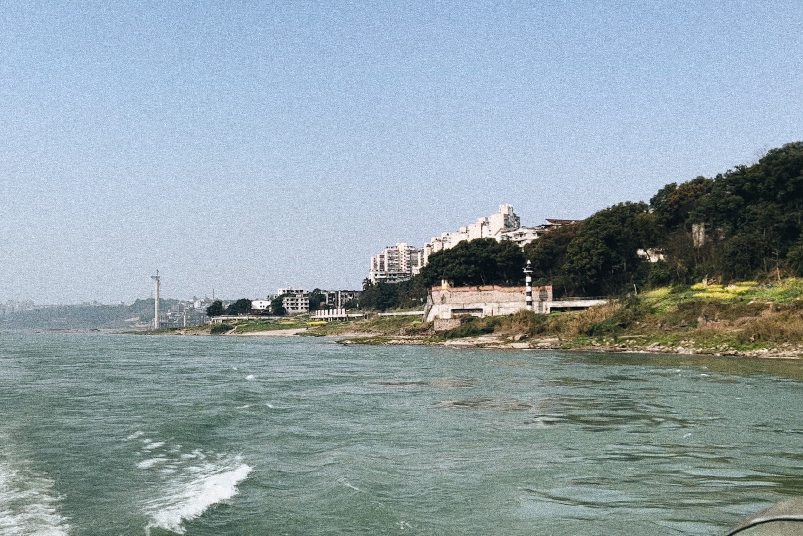 为“证实”唐寿兵的话,返航途中,记者紧靠桅杆,全程注视着江水——在蓝天的映射下,长江呈碧绿色,即使是在有游人的堤岸旁,也不见垃圾的踪影。